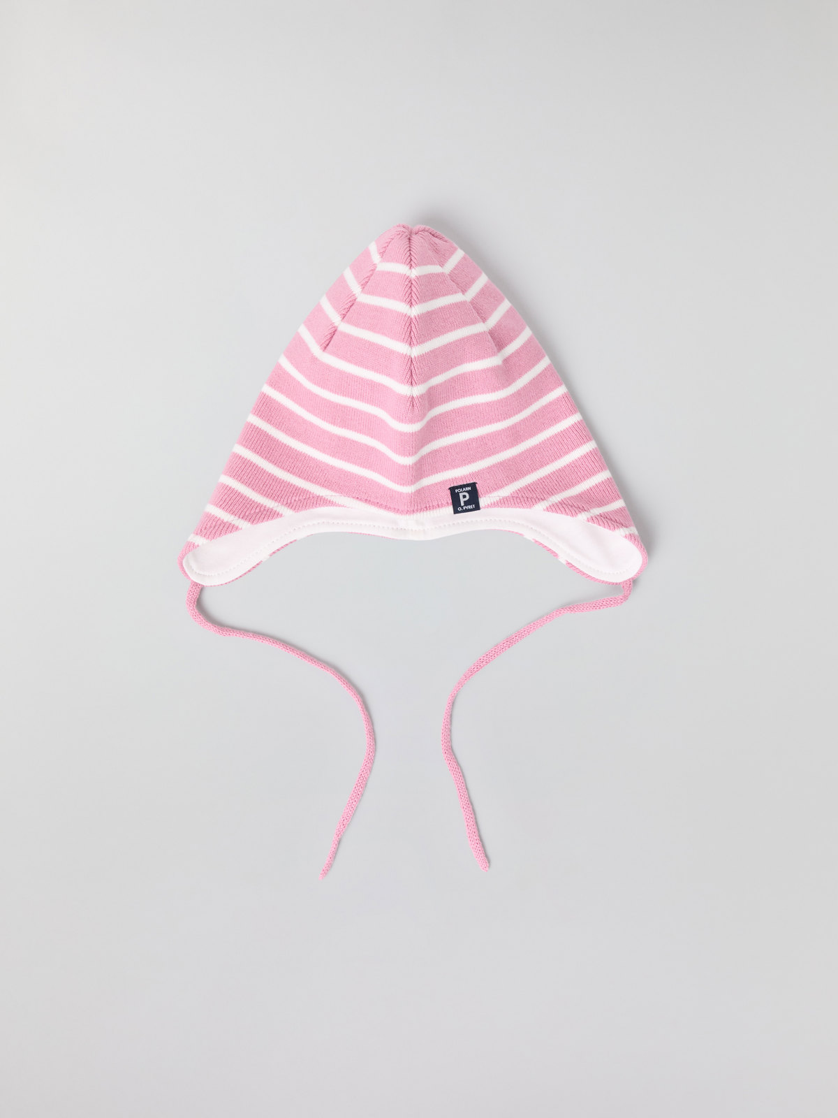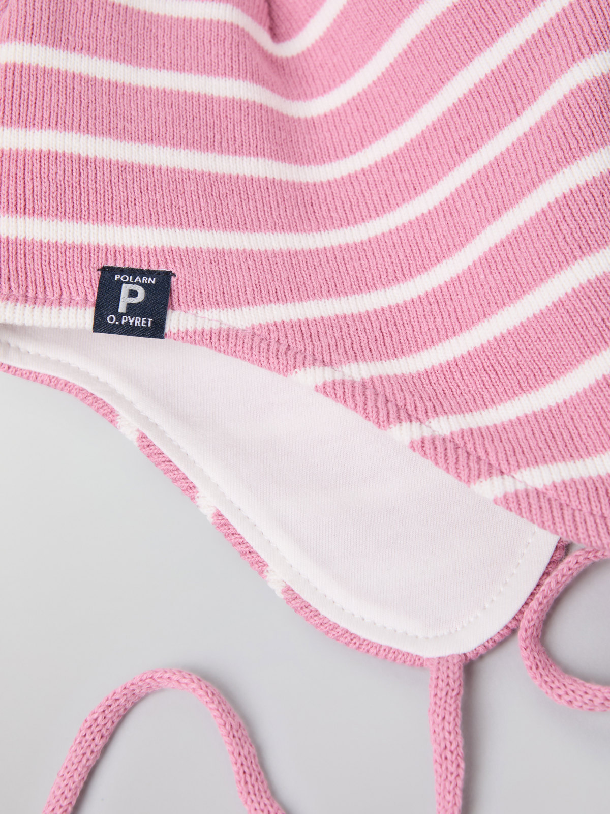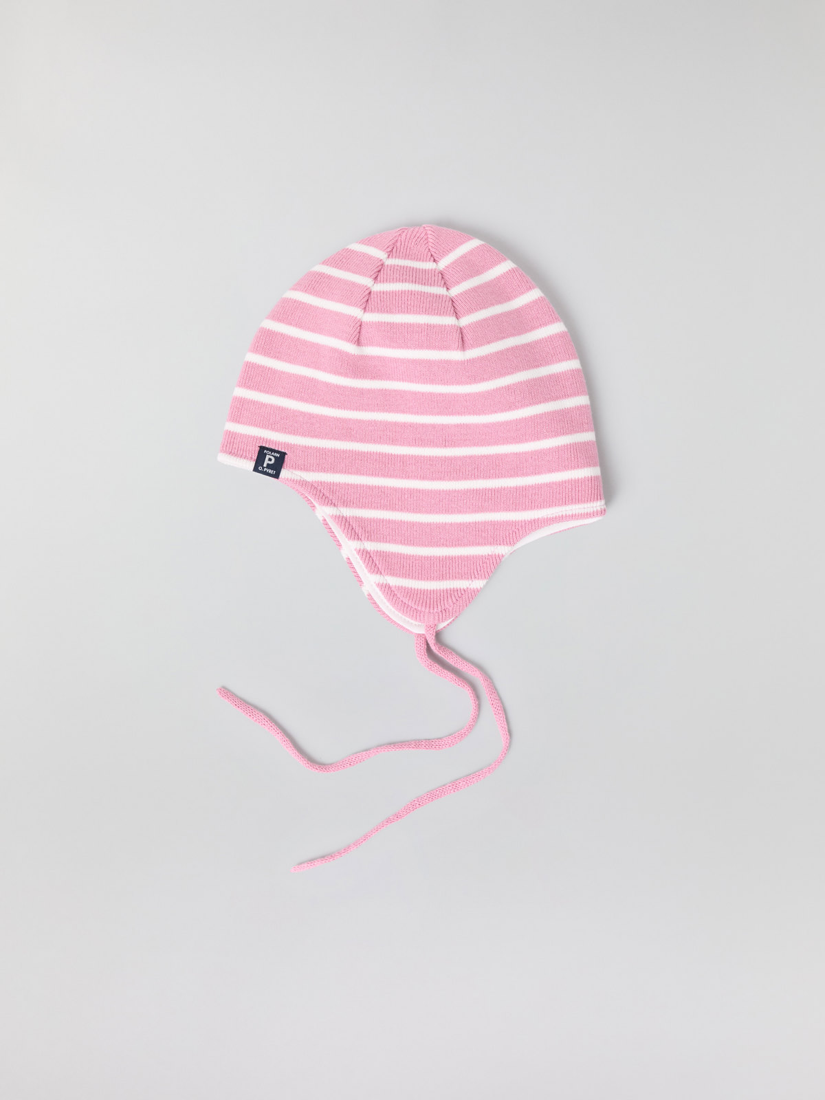 Mössan har vår klassiska rand och går ned skönt över öronen. Det mjuka knytbandet håller mössan på plats.