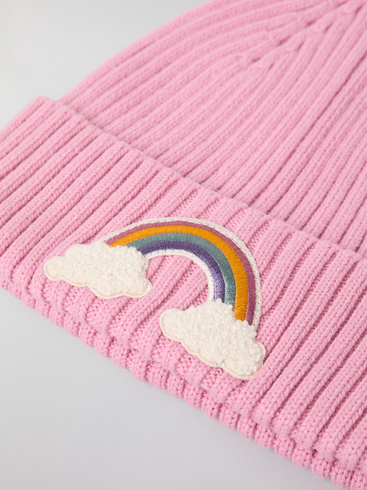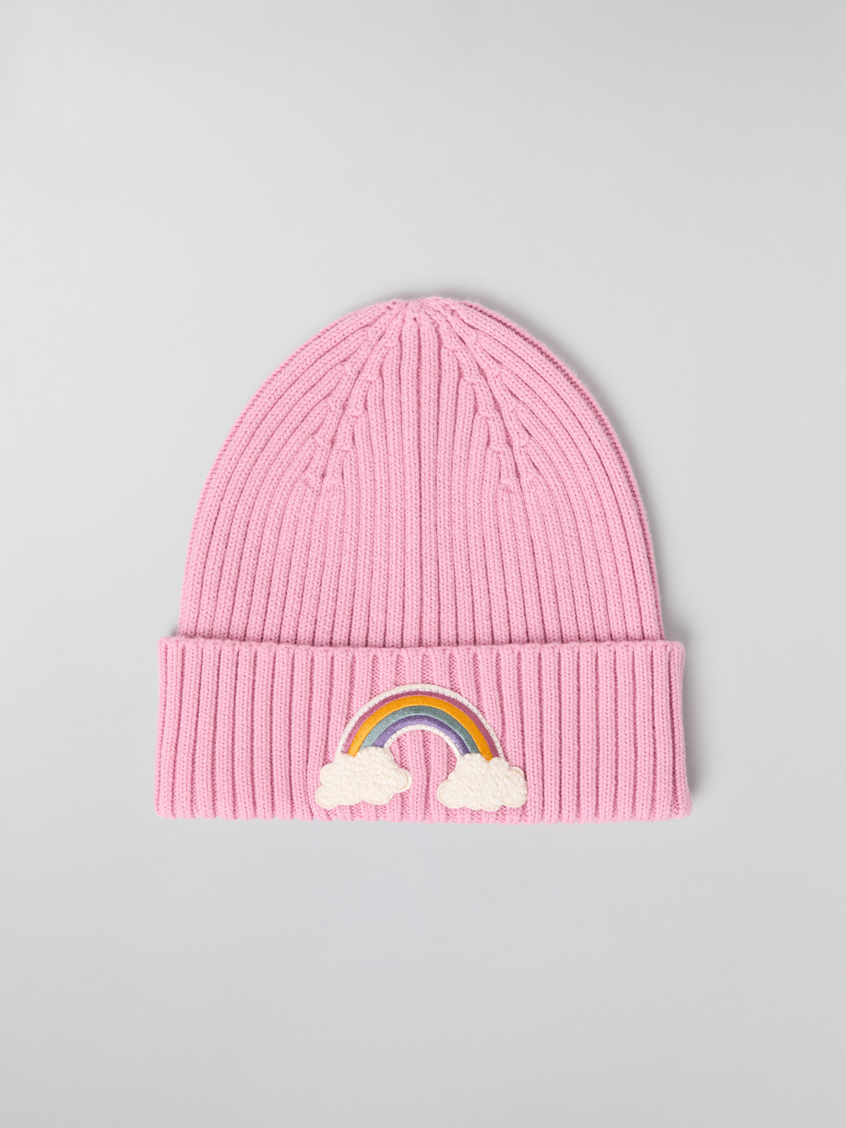 Ribbstickad mössa i ekologisk bomull – perfekt för småkyliga höst- och vårdagar. Mössan har ett uppvik i nederkant och en broderad applikation fram.