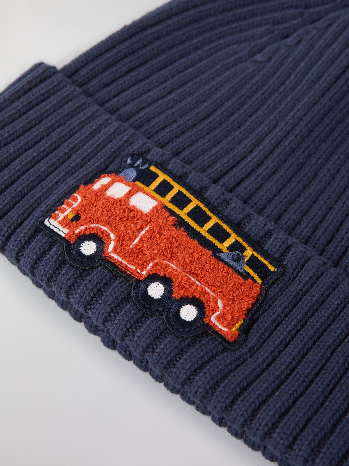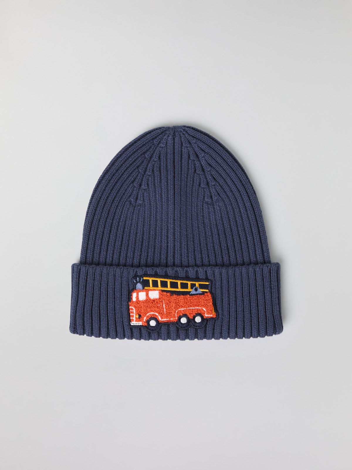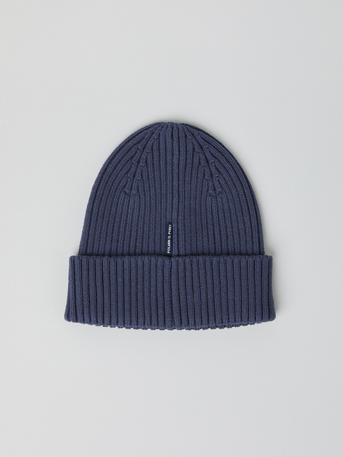 Ribbstickad mössa i ekologisk bomull – perfekt för småkyliga höst- och vårdagar. Mössan har ett uppvik i nederkant och en broderad applikation fram.