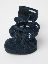 Tossorna är tillverkade i 100% återvunnen polyester och har ett mjukt foder i 100% ekologisk bomullstrikå. De har elastisk resår kring vristen och karborrekäppning fram, för att gör det enkelt att ta på och av. Sulan har en något stabilare undersida.