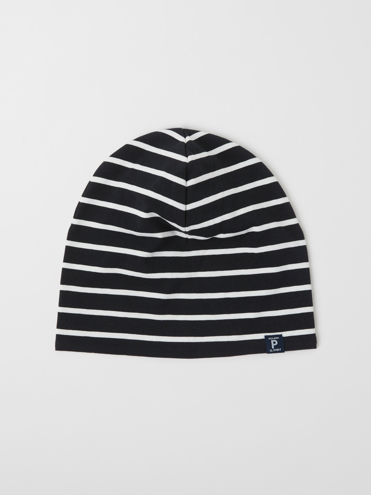 Randig mössa i mjuk ekologisk bomull. Mössan har vår klassiska rand och är fodrad med mjuk och värmande fleece i återvunnen polyester.