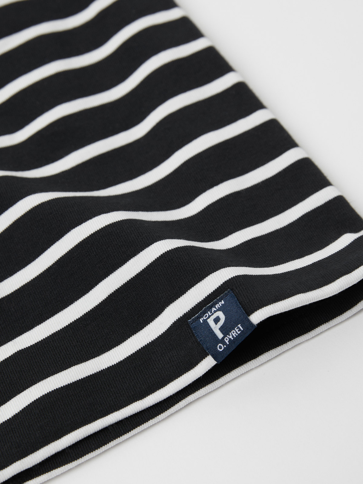Randig tubhalsduk i ekologisk bomull. Polokragen har ett mjukt fleecefoder på insidan i återvunnen polyester och passar perfekt under en jacka eller overall för extra värme under kyliga dagar.