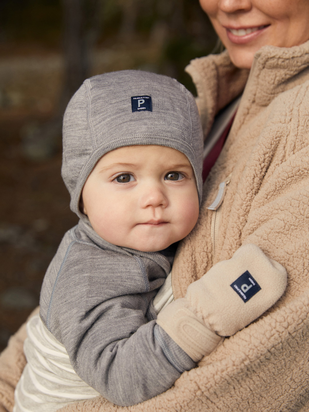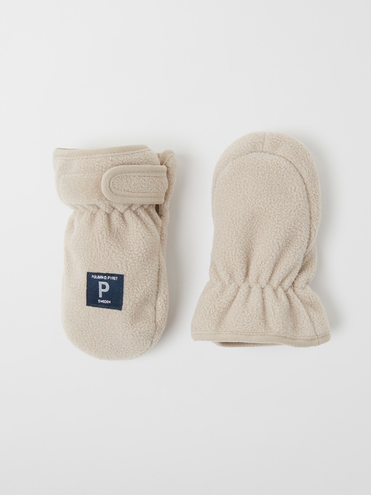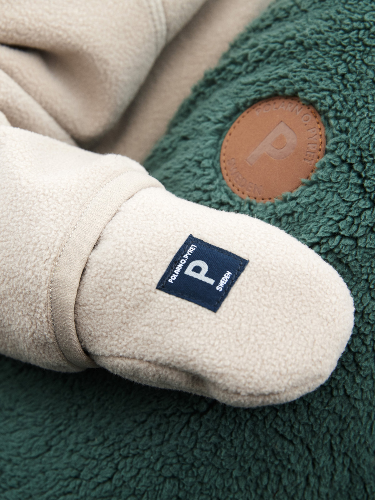 Enfärgade vindfleecevantar med tunn vaddering, för baby. Perfekt att ha i vagnen på vår och höst promenaden!