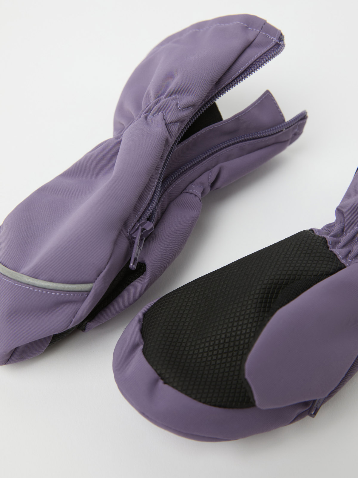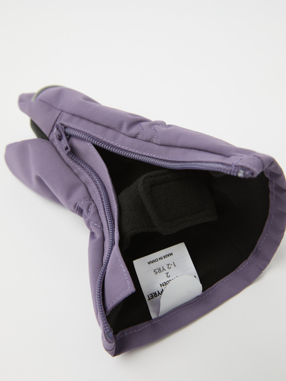 På insidan har vantarna ett elastiskt band i mjuk fleece som går att knäppa runt handleden med karborreband så att de sitter på plats.