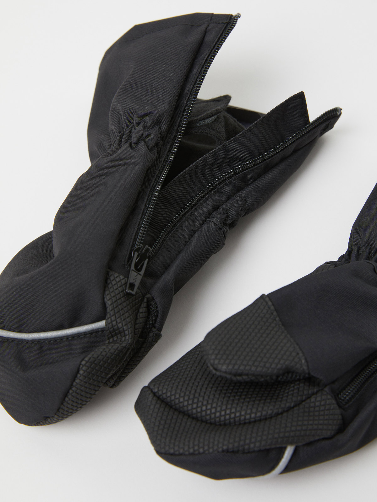 Vindtäta skalvantar. Vantarna har en dragkedja på sidan som förenklar av- och påtagning. De har tydliga reflexer på ovansidan, samt förstärkningarna på insidan av handflatan, som gör vantarna lätta att greppa med. På insidan av vantarna finns det dessutom ett elastiskt band i mjuk fleece som går att knäppa runt handleden med karborreband så vantarna sitter på plats. Dragkedjan är inte vattentät.