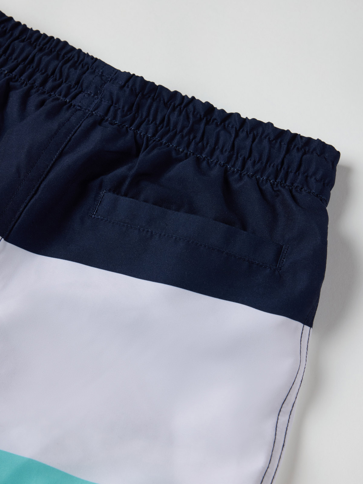 Blockrandiga badshorts med elastisk midja och knytband. Shortsen har en innerbyxa i mjuk mesh och en ficka bak. De är tillverkade av återvunnen polyester.
