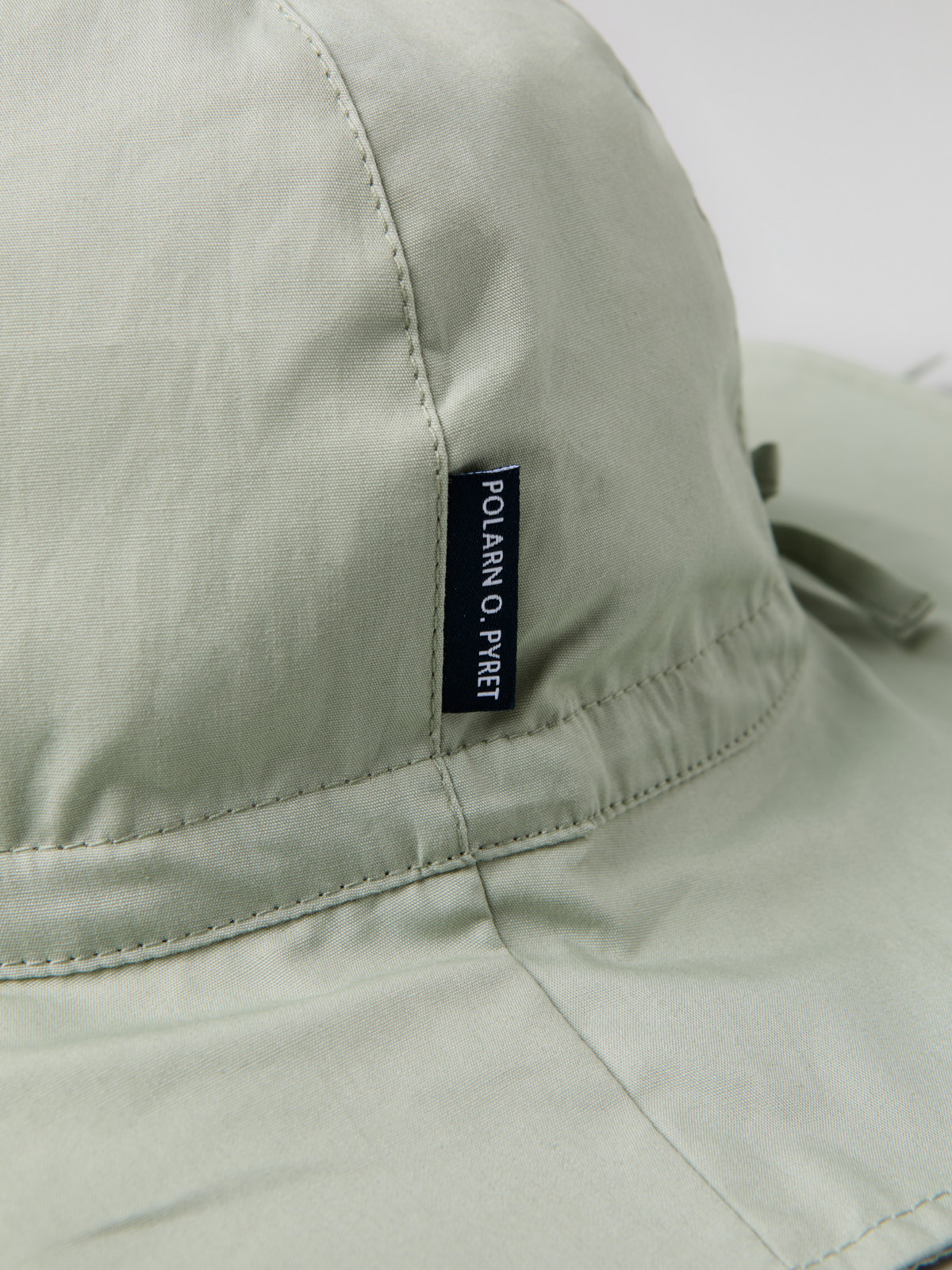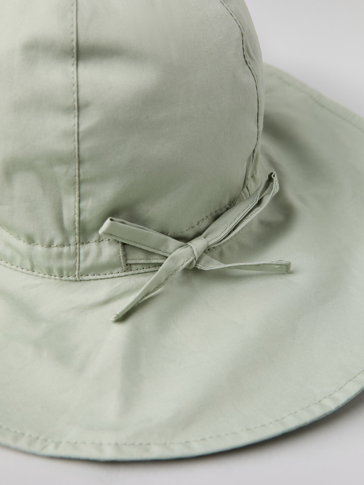 Solhatt i 100 % ekologisk bomull med UV-skydd UPF 50 – ett måste för de små i solen! Solhatten har ett band kring huvudet som går att justera och knyta. Knytbandet under hakan håller solhatten på plats.