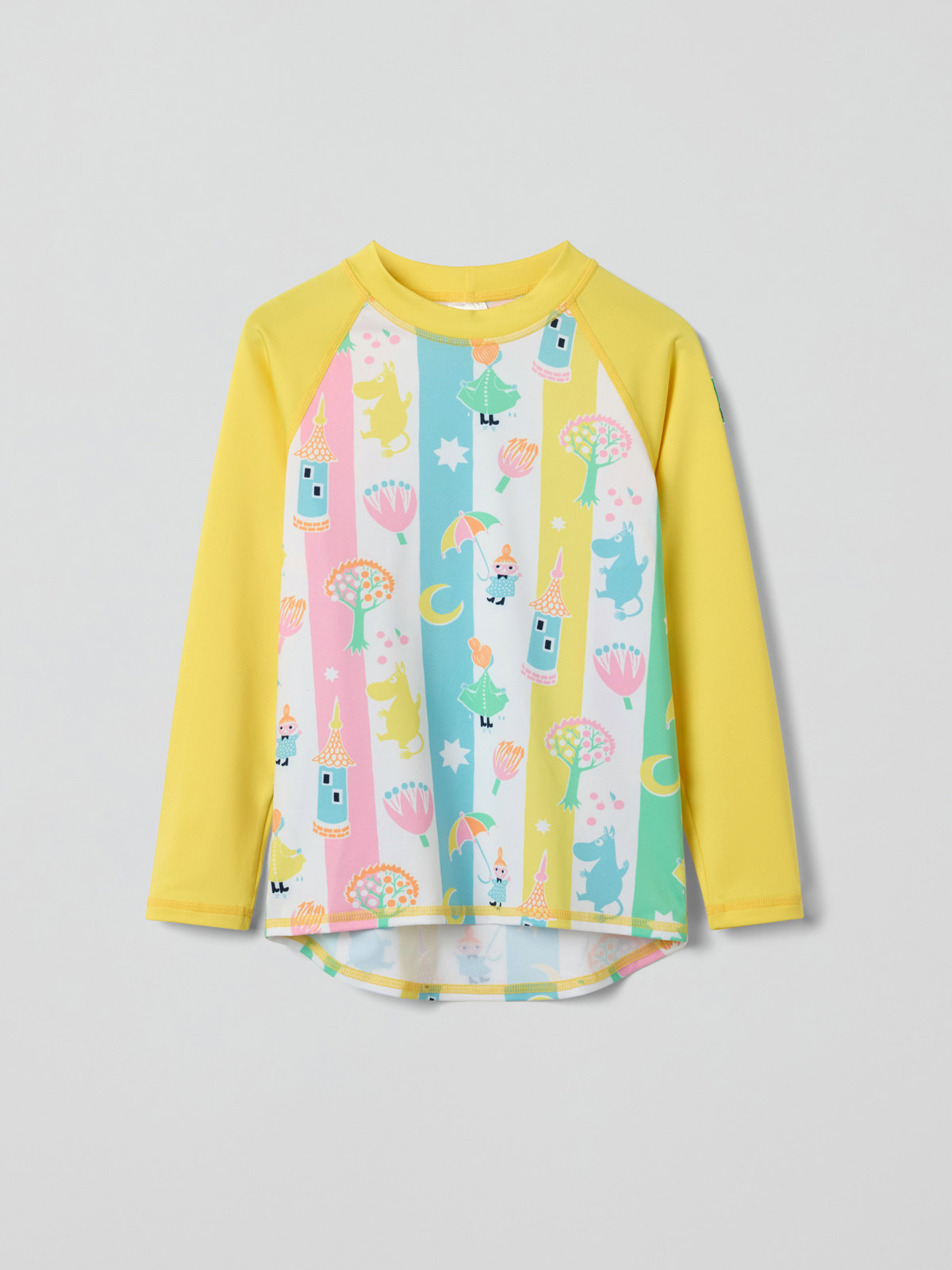 Långärmad UV-tröja med UPF 50, tillverkad i mjukt och skönt material av återvunnen polyester. Plagget är en del av vår limiterade kollektion för att fira Mumins 80-årsjubileum. Exklusivt för jubileumsåret 2025 är att mumintrollen återigen får synas i färg – för första gången sedan 1956.