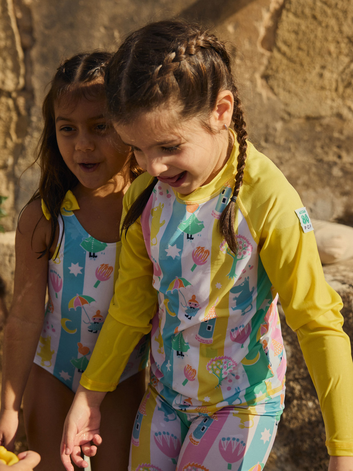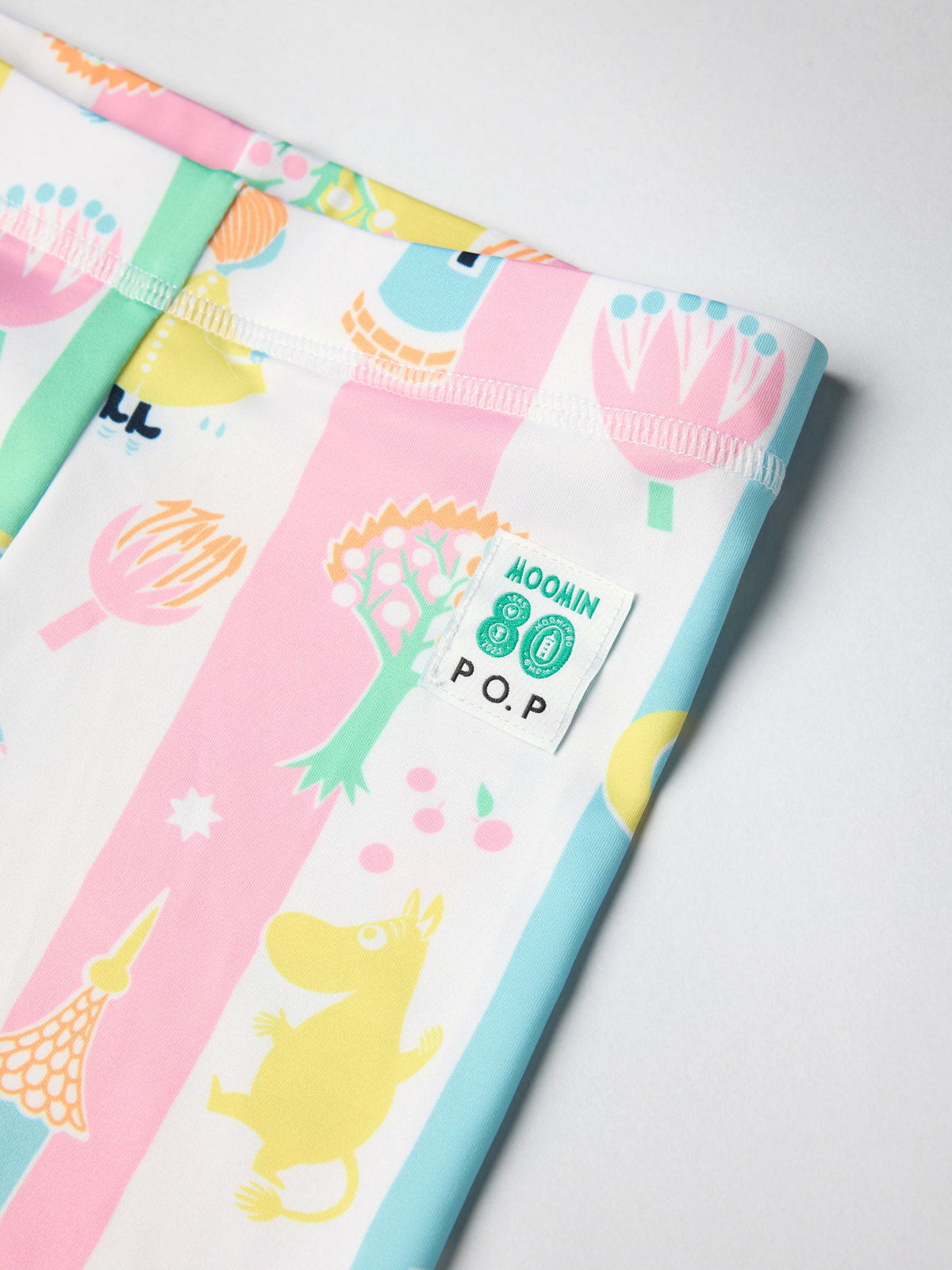 UV-shorts med UPF 50, tillverkade i mjukt och skönt material av återvunnen polyester och sydda med extra mjuka sömmar. Plagget är en del av vår limiterade kollektion för att fira Mumins 80-årsjubileum. Exklusivt för jubileumsåret 2025 är att mumintrollen återigen får synas i färg – för första gången sedan 1956.