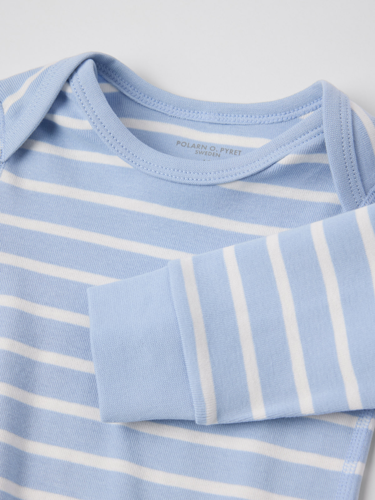 Mjuk och skön body i 100 % ekologisk bomull för baby. Ett perfekt basplagg att ha i barngarderoben! Bodyn har vår klassiska rand och omlottlagda axlar, vilket gör den enkel att trä över bebisens huvud. Den har även mjuk ribbad mudd vid ärmslut.