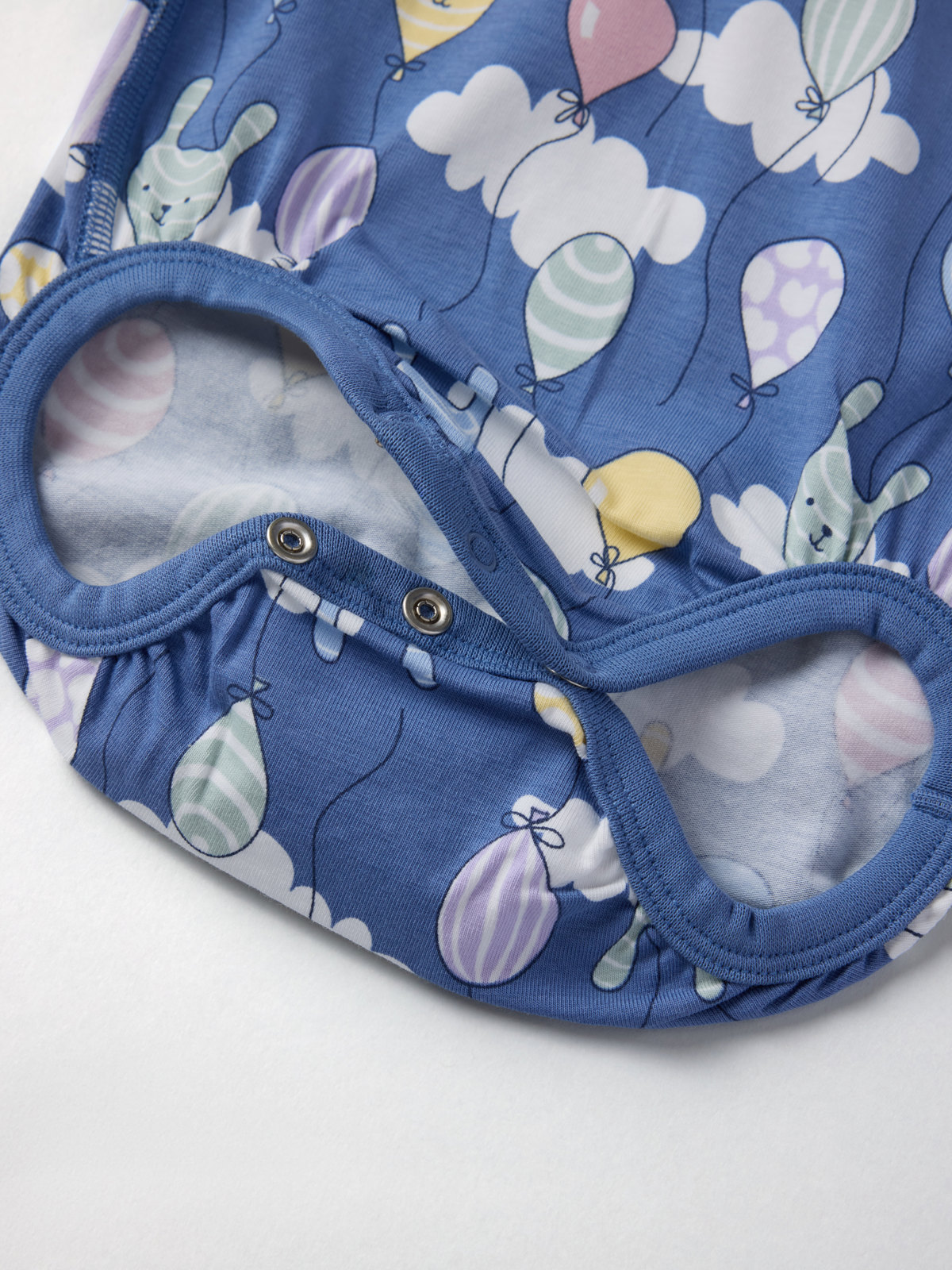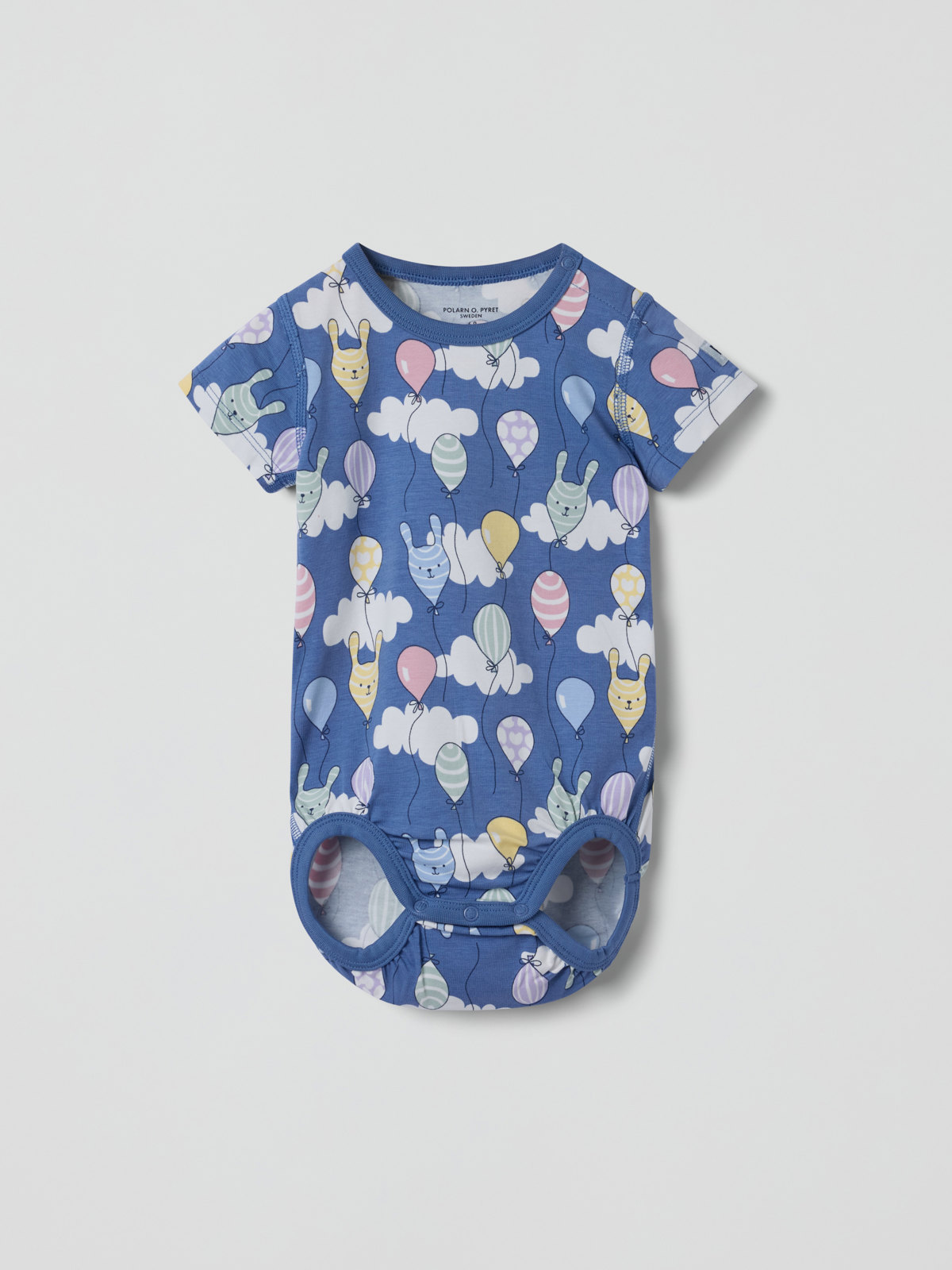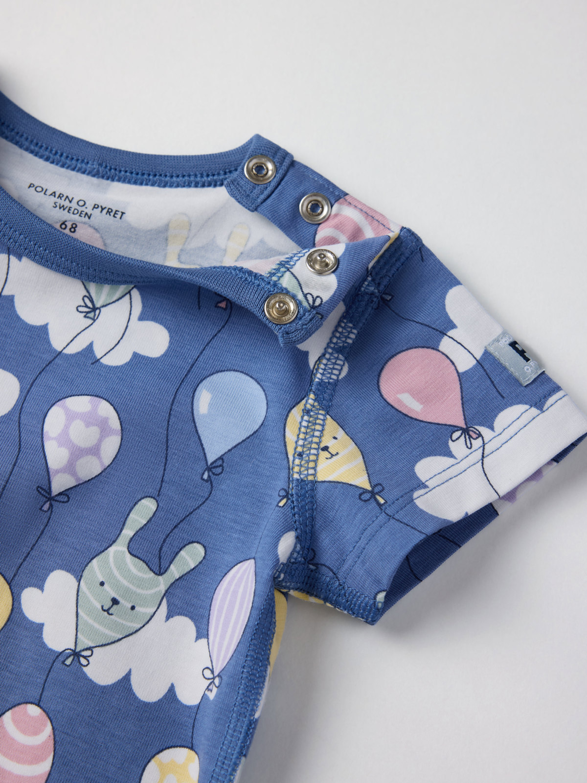 Kortärmad body i mjuk ekologisk bomull sydd med extra mjuka, platta sömmar som inte skaver mot känslig hud. Bodyn är helmönstrad med ballonger.