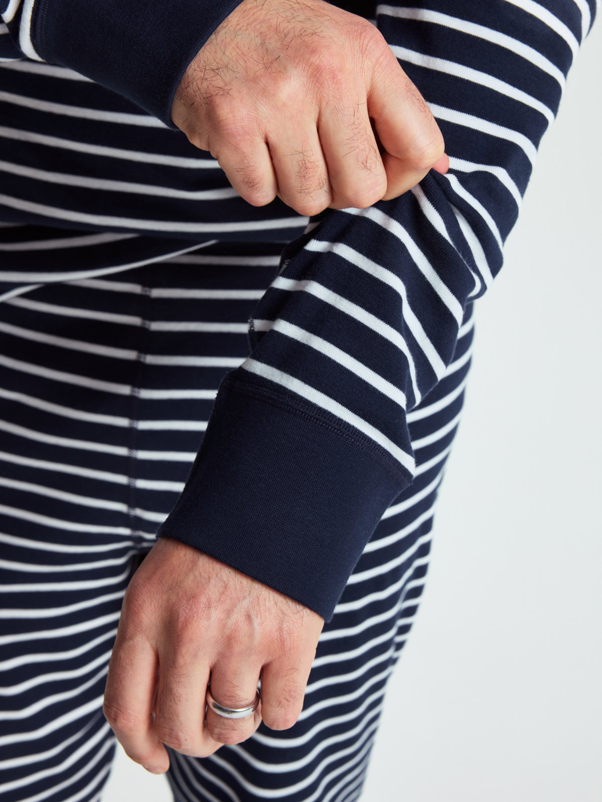 Ribbad trikåtröja i 100 % mjuk ekologisk bomull, i vuxenstorlekar. Tröjan har vår klassiska rand med mjuk ribbad mudd kring halsringningen och ärmsluten för skön passform.