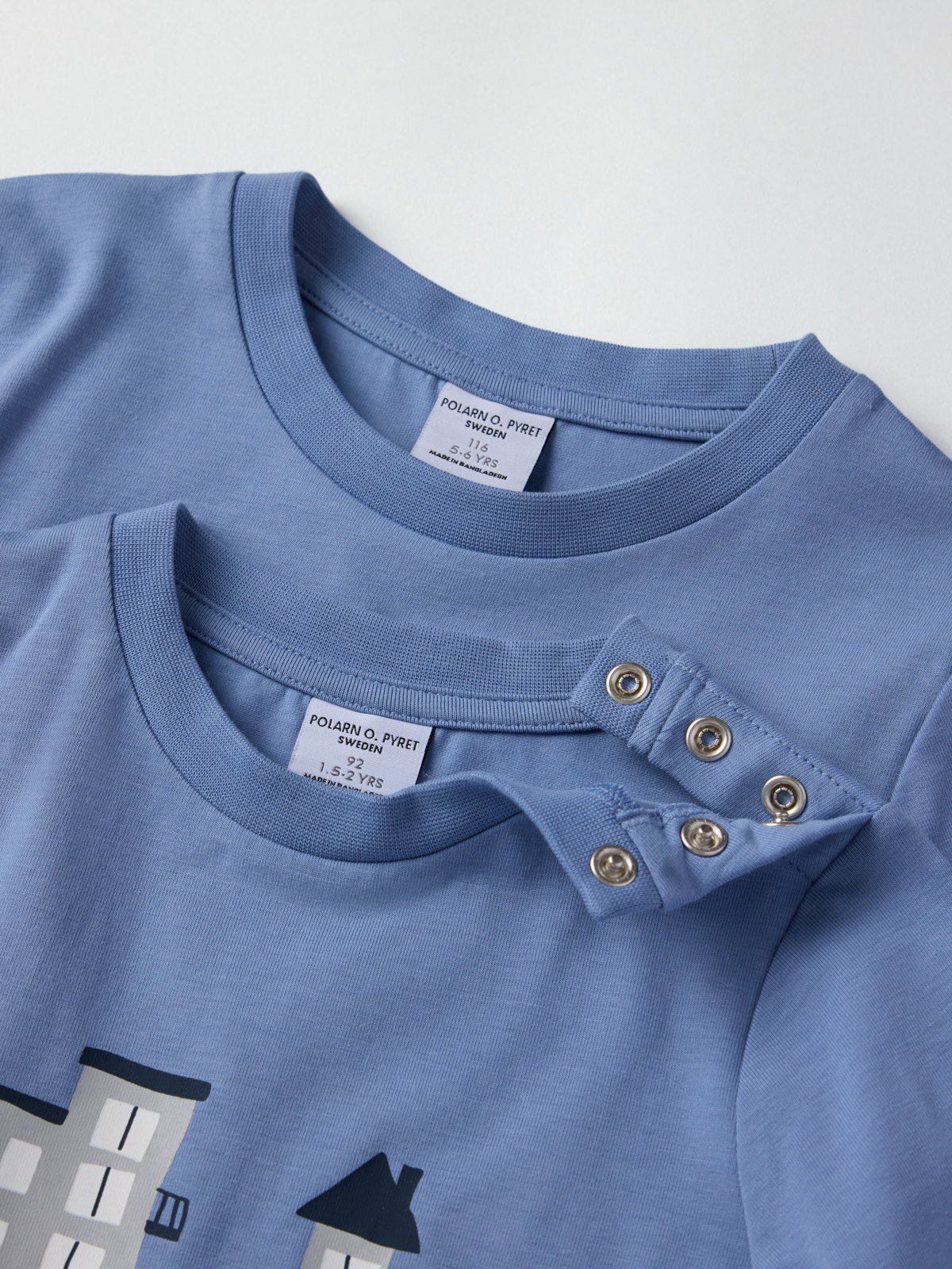 Storlek 86-92 har tryckknappar bak på ena axeln för att underlätta klädbyten.