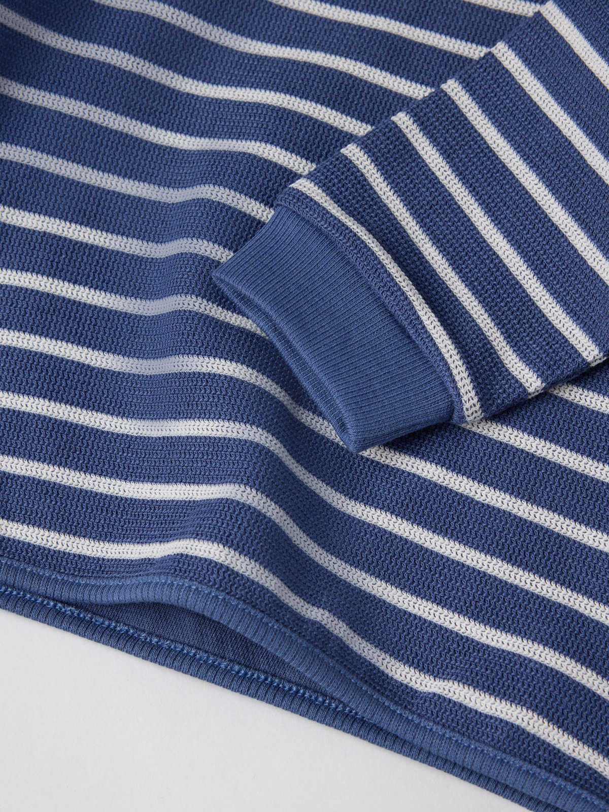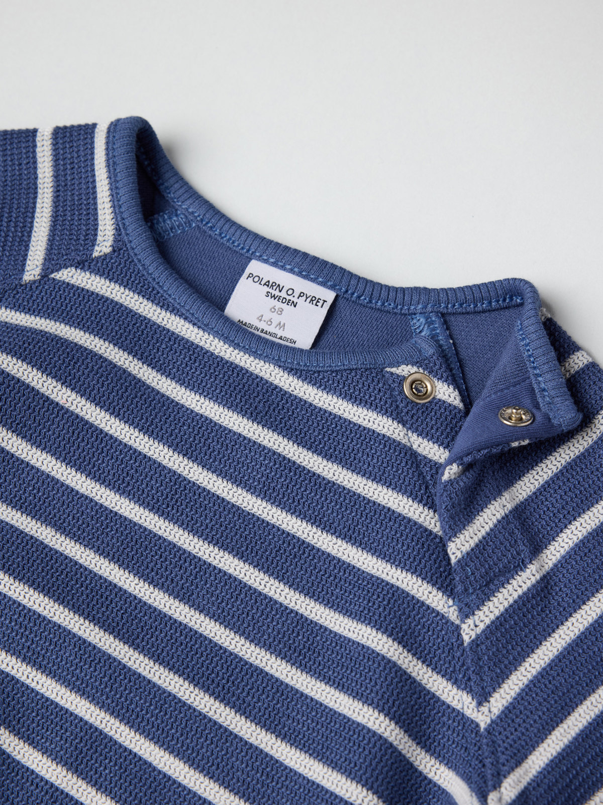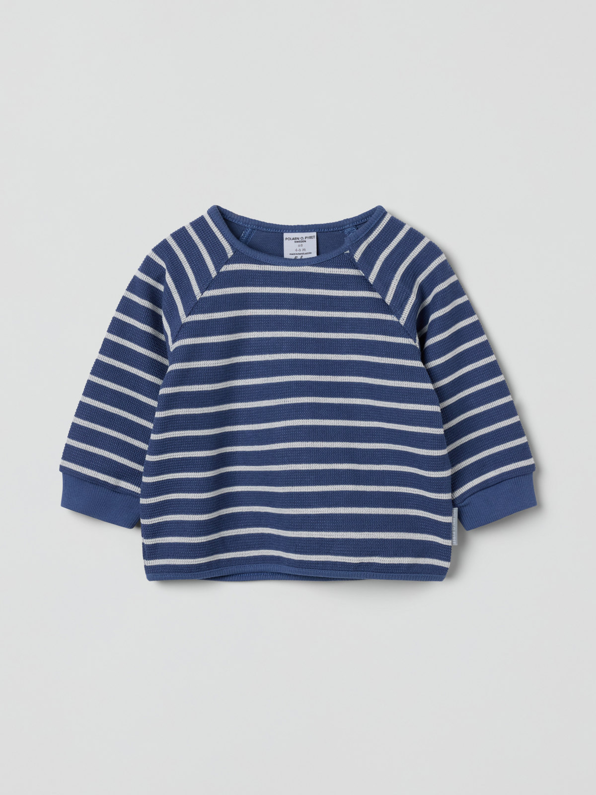 Rymlig sweatshirt i 100 % ekologisk bomull för baby. Tröjan har vår klassiska rand och mjuka muddar vid ärmsluten för skön passform.