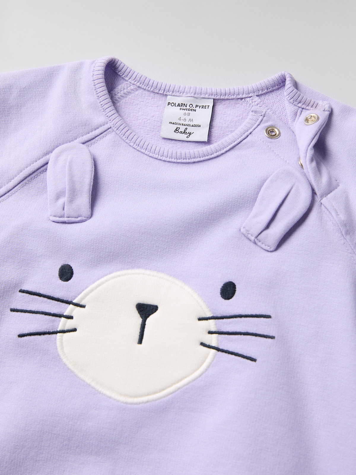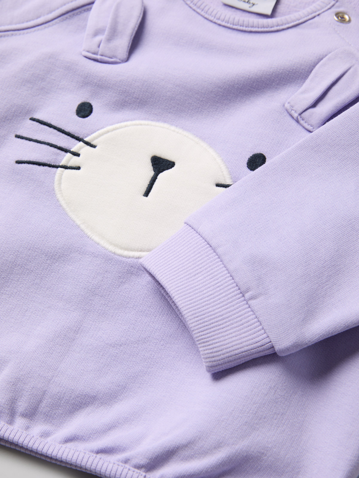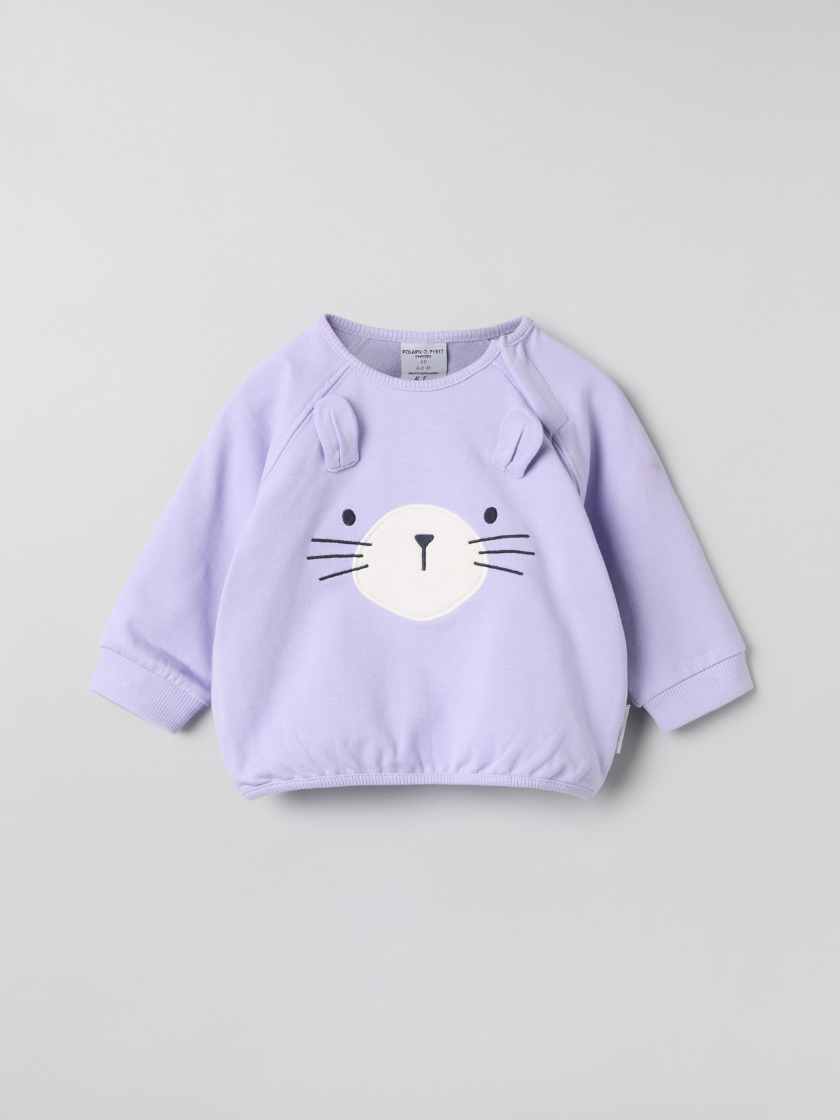 Rymlig tröja i 100 % ekologisk bomull med skön sweatshirtkvalitet, för baby. Tröjan har ett broderat kaninansikte på framstycket och mjuka muddar vid ärmsluten.