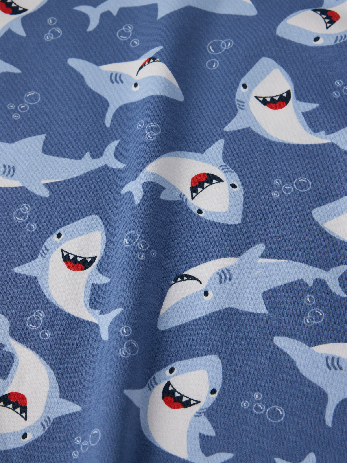 T-shirt i mjuk ekologisk bomull helmönstrad med hajar – en riktigt sommarfavorit att älska länge och som passar till allt! T-shirten finns i flera färger och med olika prints som matchar fint med hela kollektionen. Hitta din favorit!