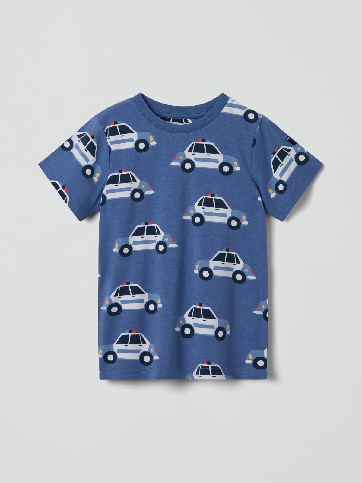 T-shirt i mjuk ekologisk bomull helmönstrad med polisbilar – en favorit att älska länge och som passar till allt!