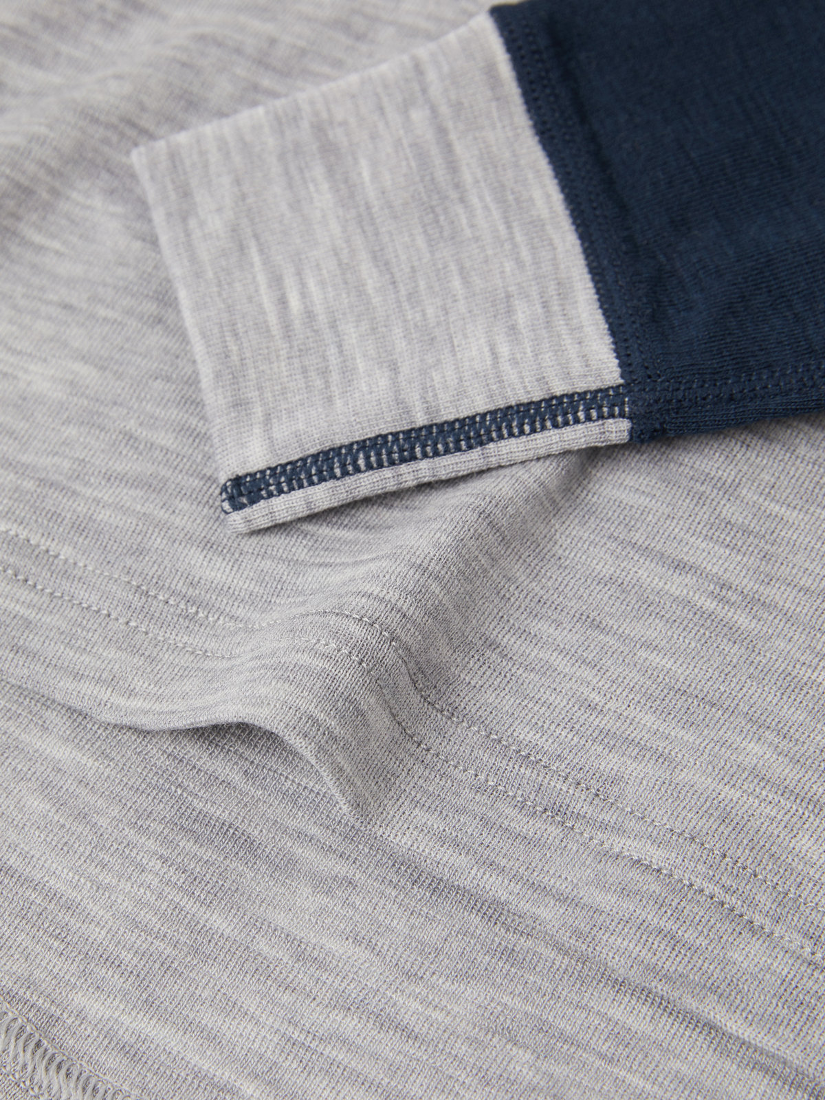 Polotröja med kontrastfägrade ärmar, i mjuk, värmande merinoull. Ett perfekt förstalager under våra ytterplagg! Merinoullen håller värmen även i blött tillstånd och hjälper till att reglera kroppstemperaturen.
