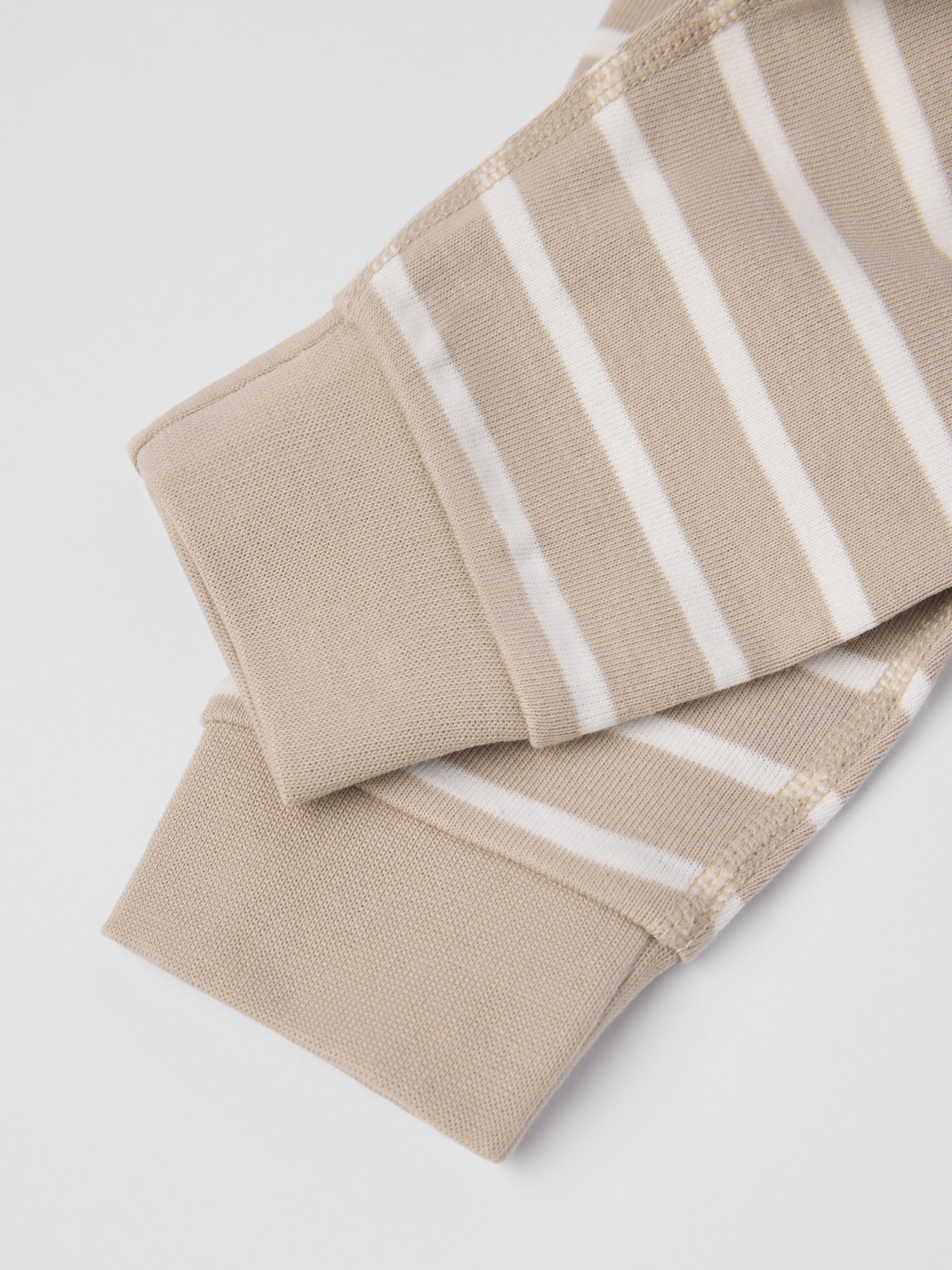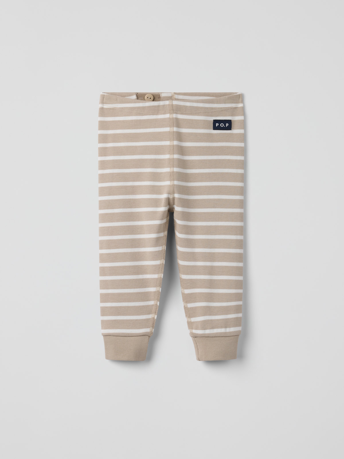 Ribbad trikåbyxa i mjuk ekologisk bomull. Ett perfekt basplagg som passar både hemma och på förskolan! Byxan har vår klassiska rand och elastisk midja som går att justera med knapphålsresår. Den har även mjuk mudd vid bensluten.