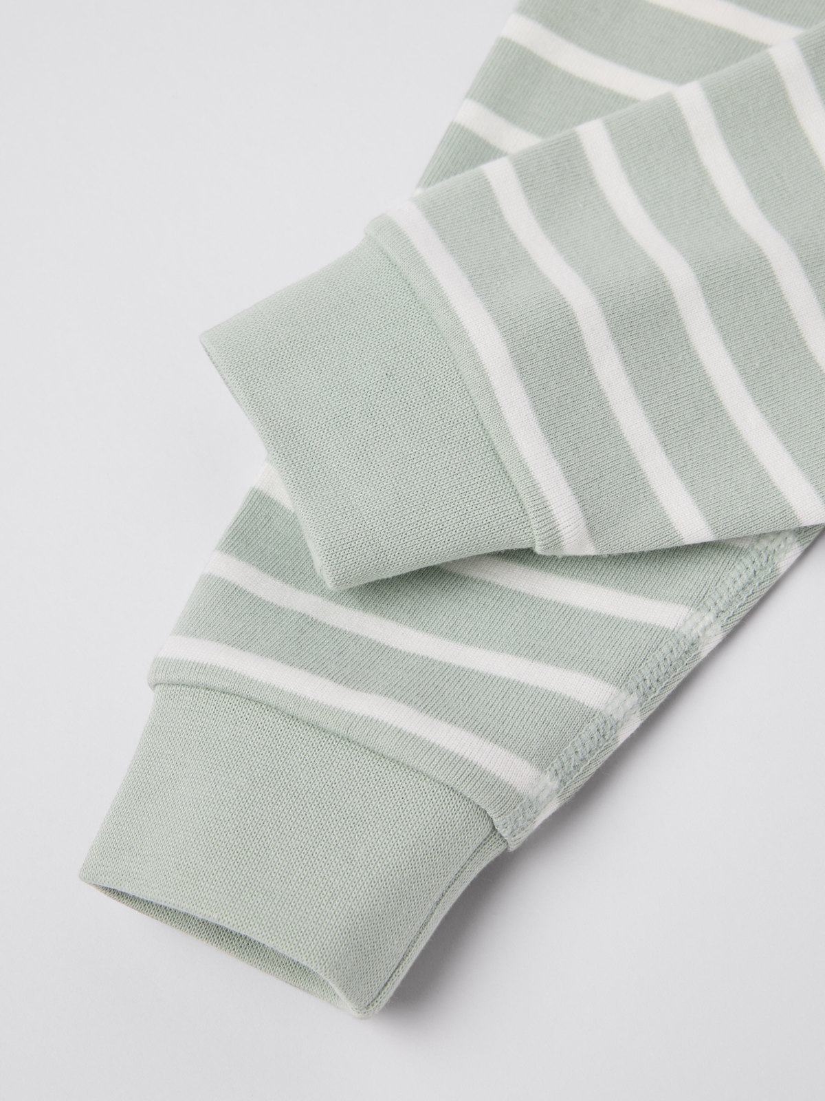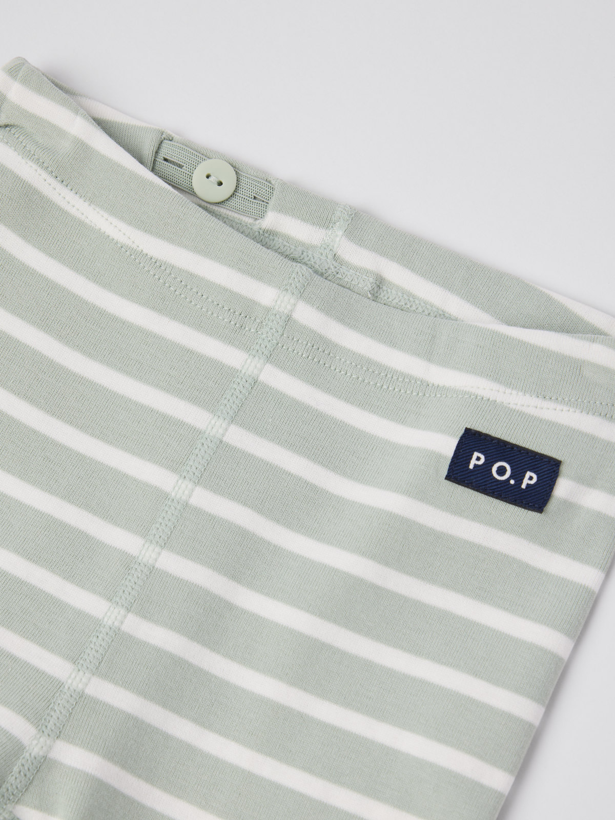 Trikåbyxa i mjuk ekologisk bomull. Ett perfekt basplagg som passar både hemma och på förskolan! Byxan har vår klassiska rand och elastisk midja som går att justera med knapphålsresår. Den har även mjuk mudd vid bensluten.