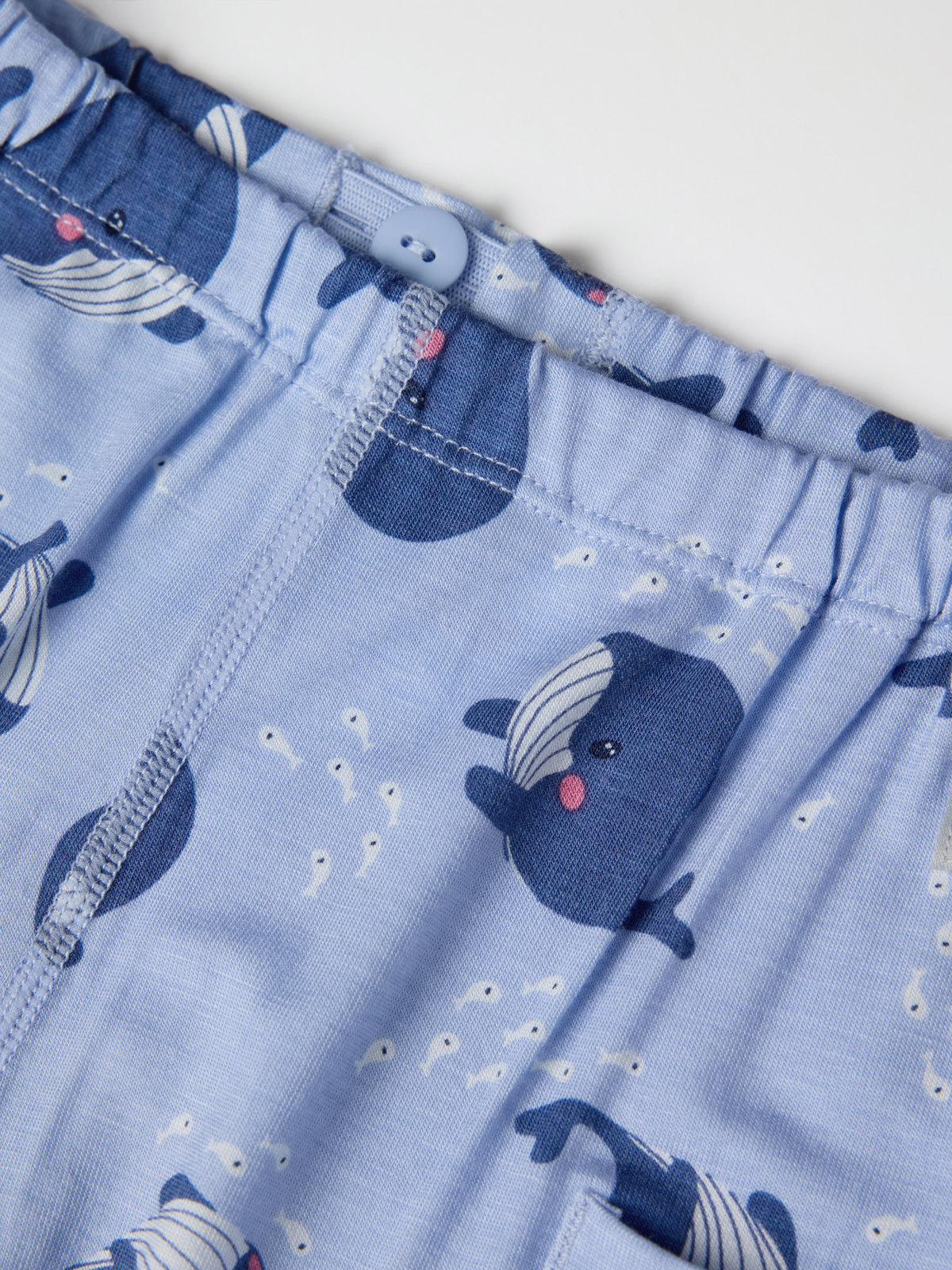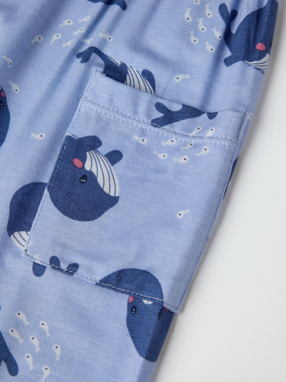 Byxa tillverkad i tunn och sval trikå av Ecovero™ Viscose – perfekt för varma dagar! Byxan är helmönstrad med valar och har två stora fickor, elastiskt midja och muddar i benslut för skön passform.
