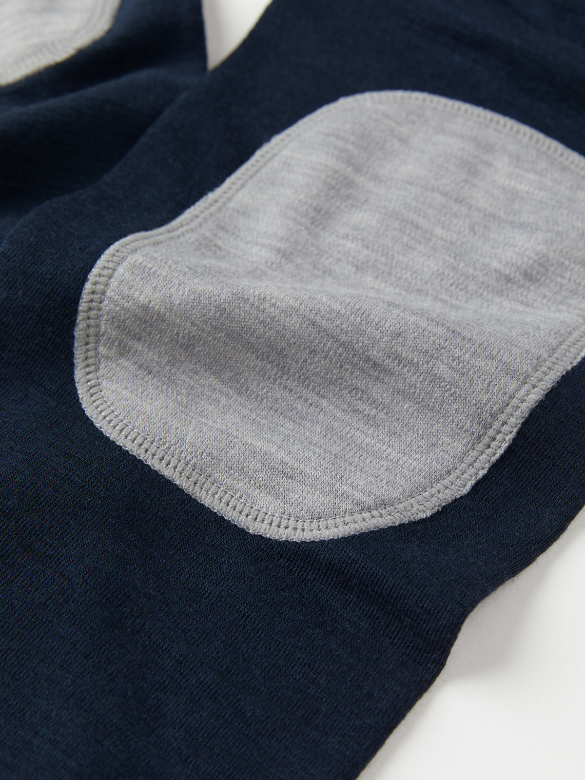 Enfärgad byxa i mjuk, värmande merinoull med kontrastfärgade knälappar och muddar. Ett perfekt förstalager under våra ytterplagg! Merinoullen håller värmen även i blött tillstånd och hjälper till att reglera kroppstemperaturen