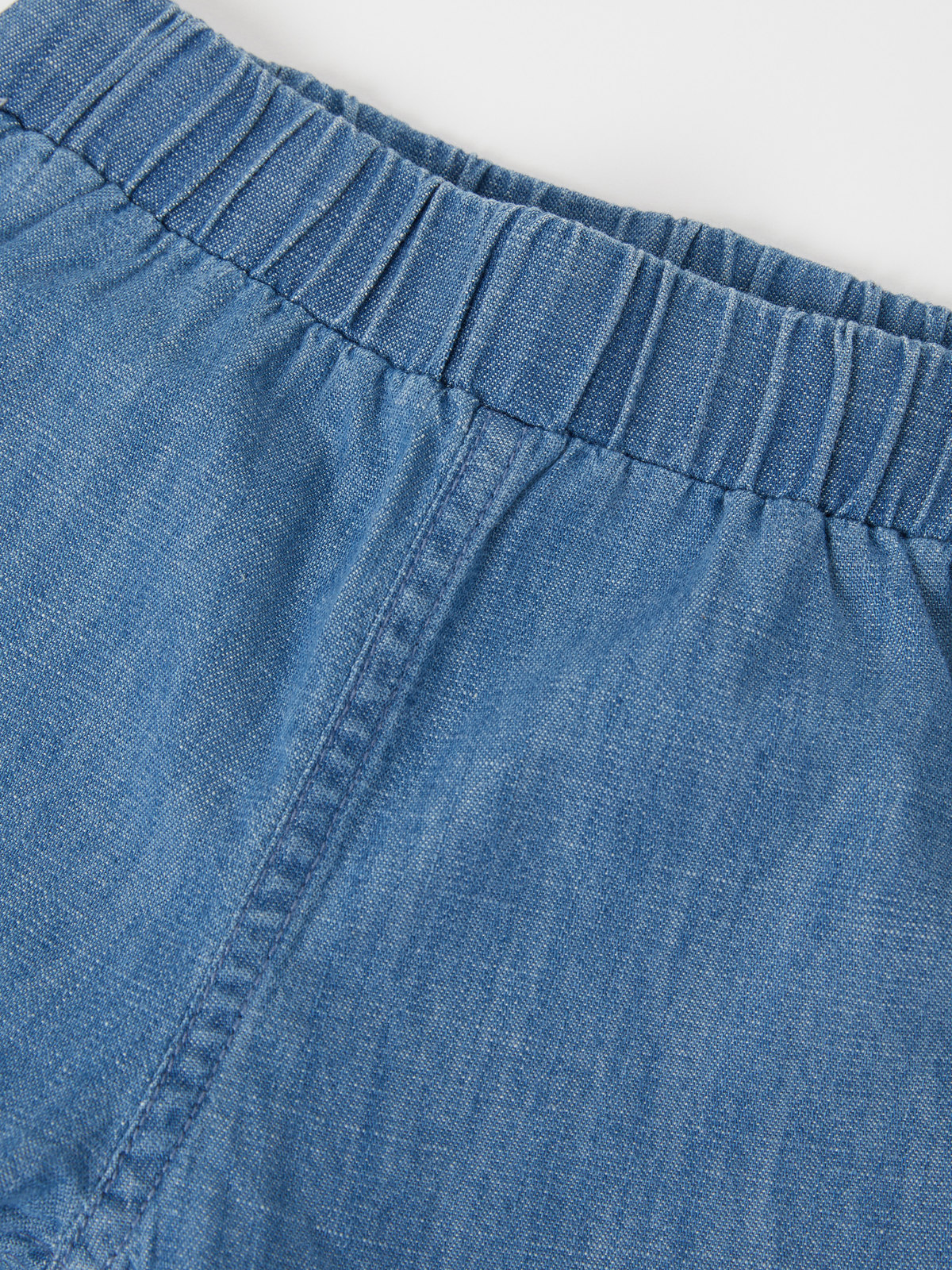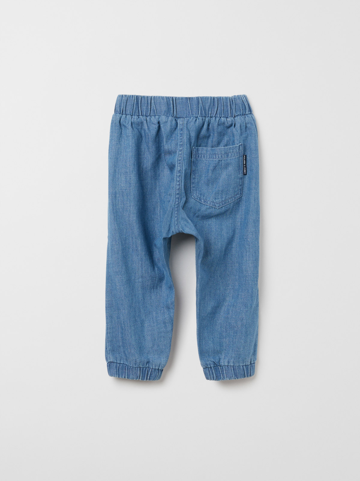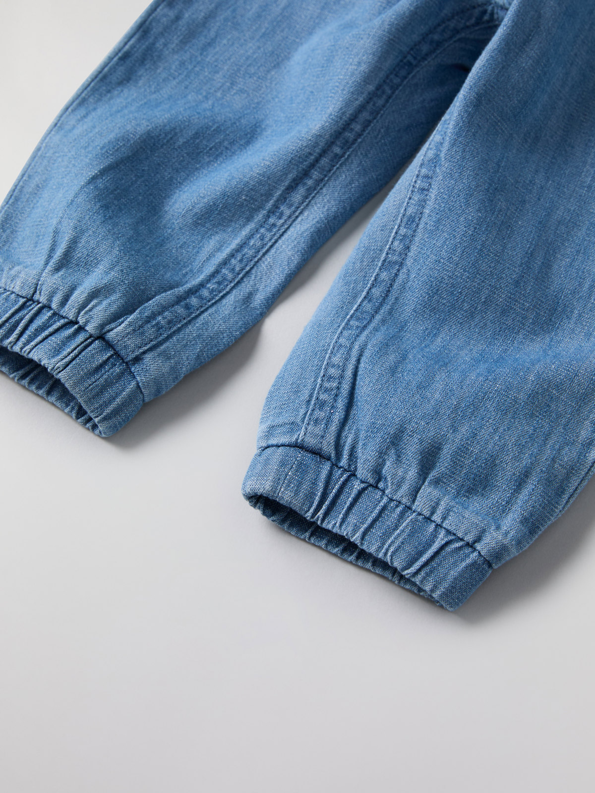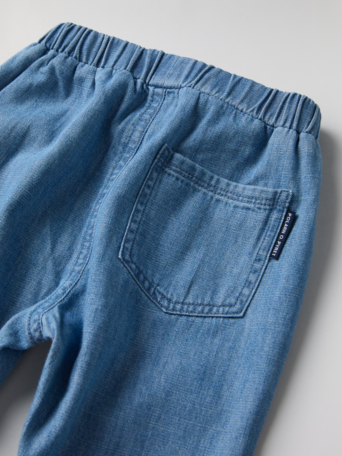 Byxa i tunn denim i ekologisk bomull för baby – perfekt dra-på-byxa!