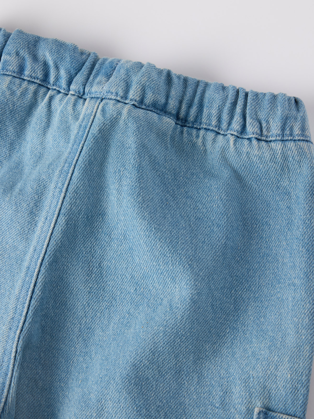Jeansshorts i tunn och följsam denim av ekologisk bomull – självklara sommarfavoriter i alla barns garderob! Lekvänlig passform med stora fickor och elastisk midja som kan justeras med knapphålsresår och knytband.