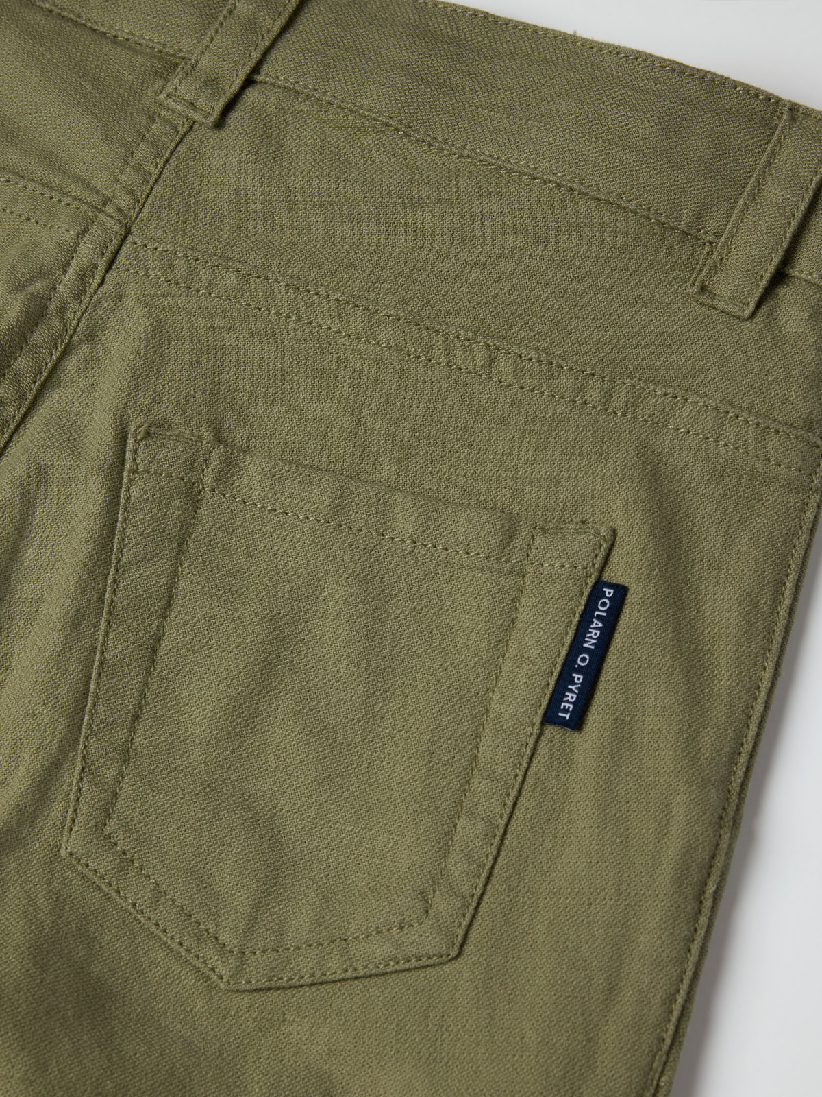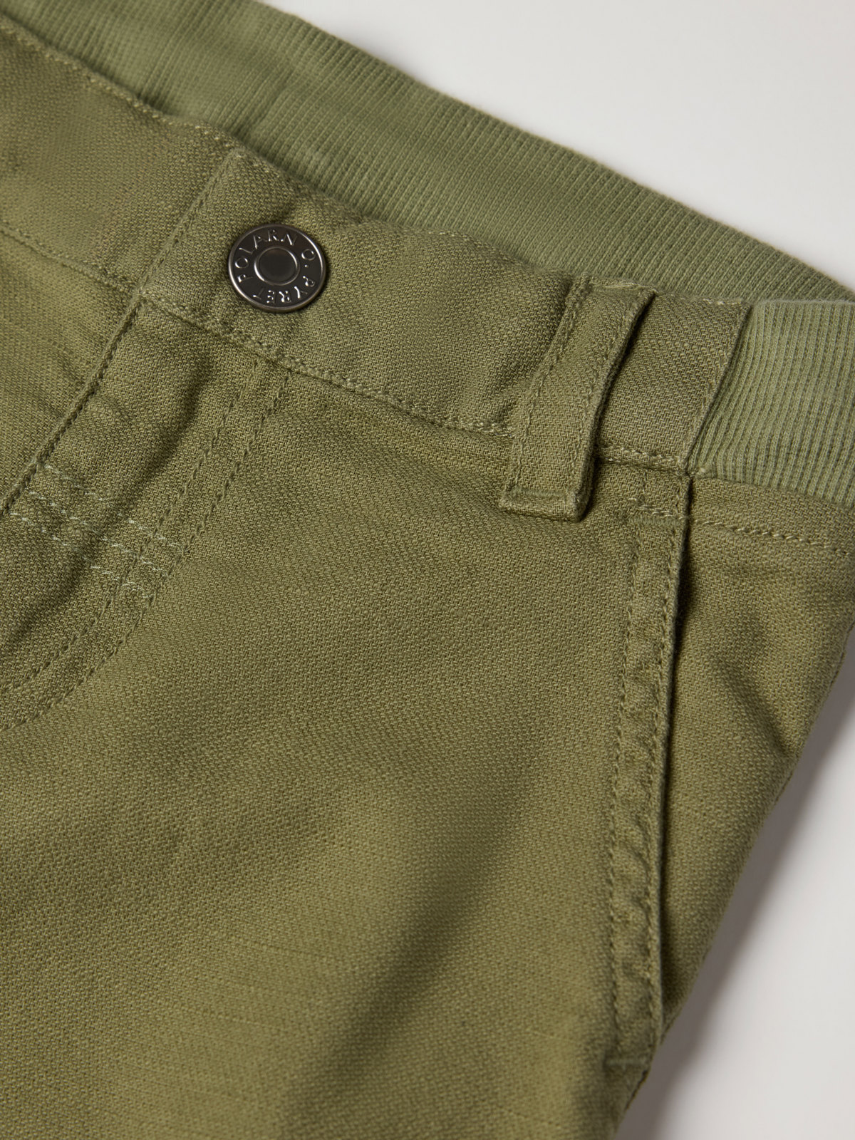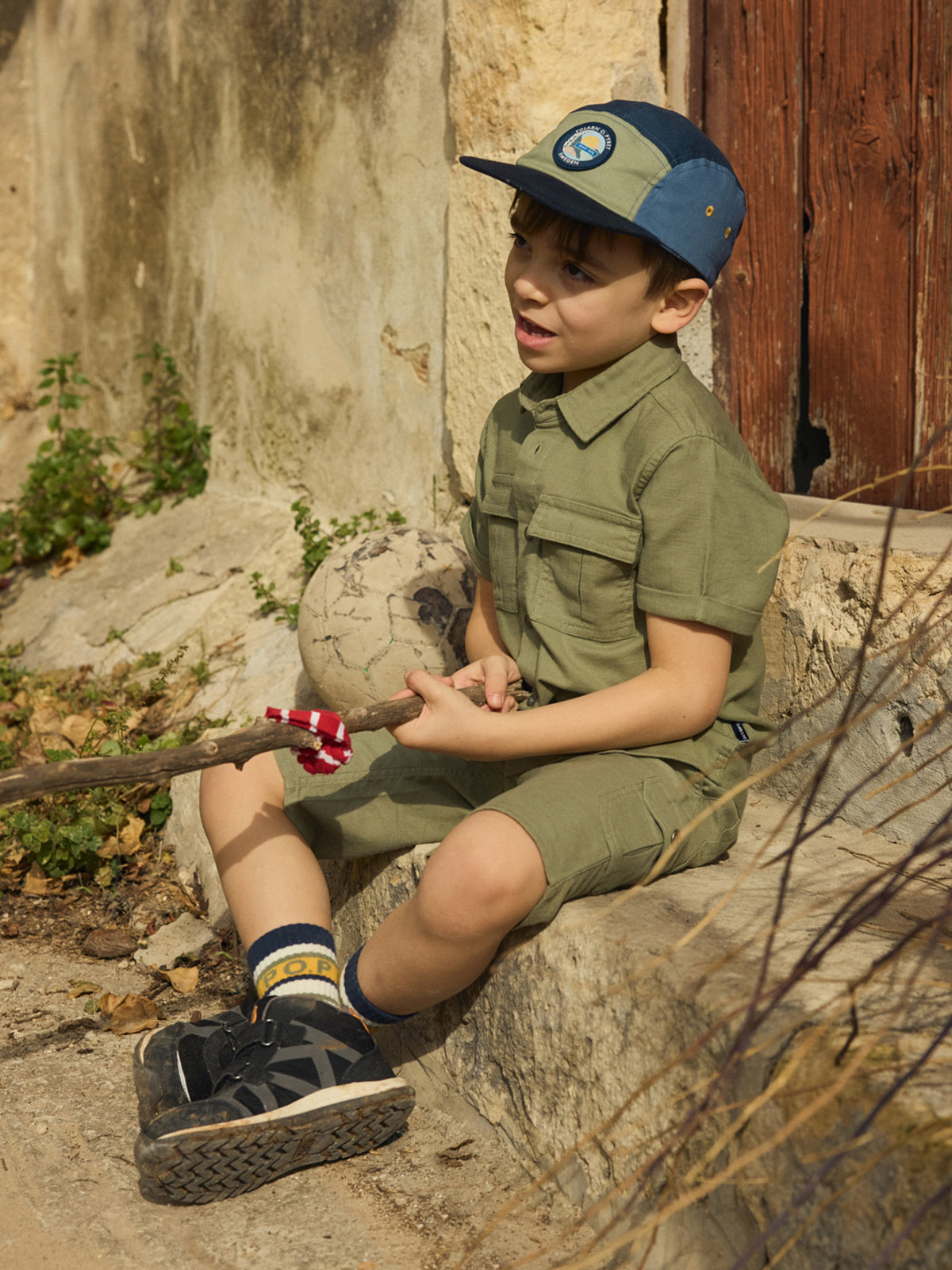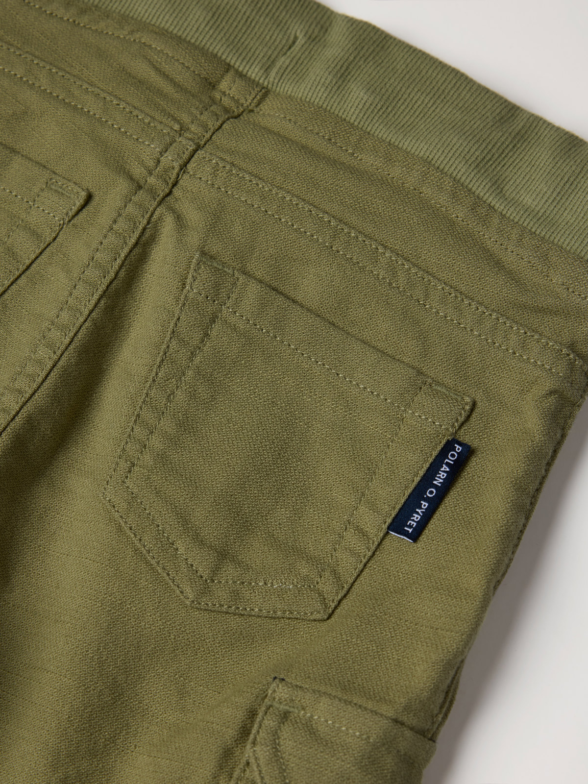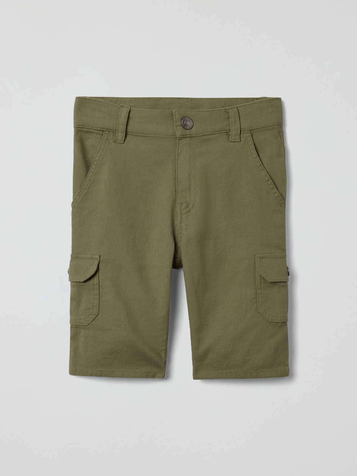 Mjuka cargoshorts i 100 % ekologisk bomull – perfekta för härliga sommaräventyr! Shortsen har förböjda knän för skön passform och uppvikbara benslut. De har fickor fram och bak, samt två benfickor som stängs med tryckknapp.