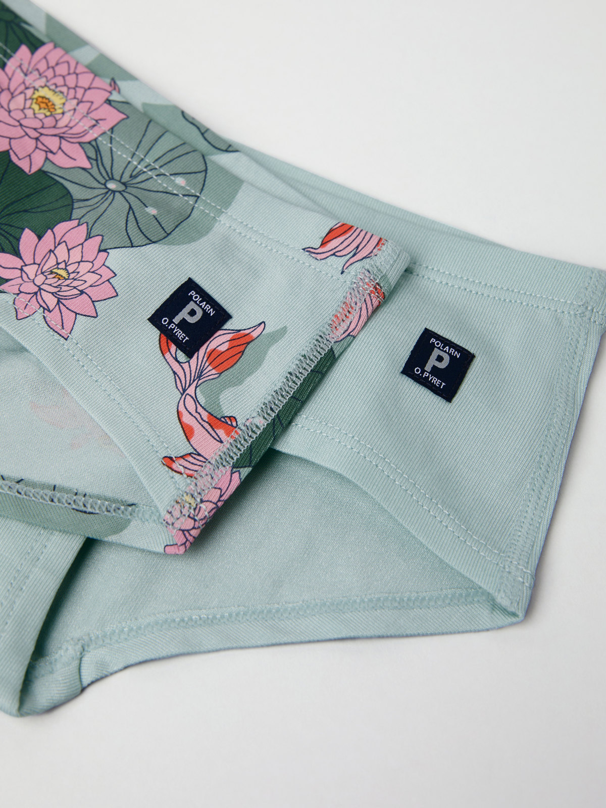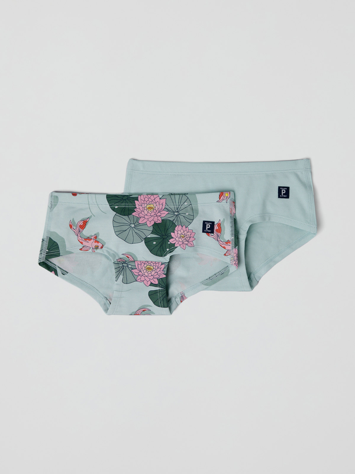 2-pack hipstertrosor tillverkade i tunn och sval trikå av Tencel™ lyocell, sydda med extra mjuka sömmar som inte skaver. Det ena paret är helmönstrat med havsmotiv, det andra är enfärgat.