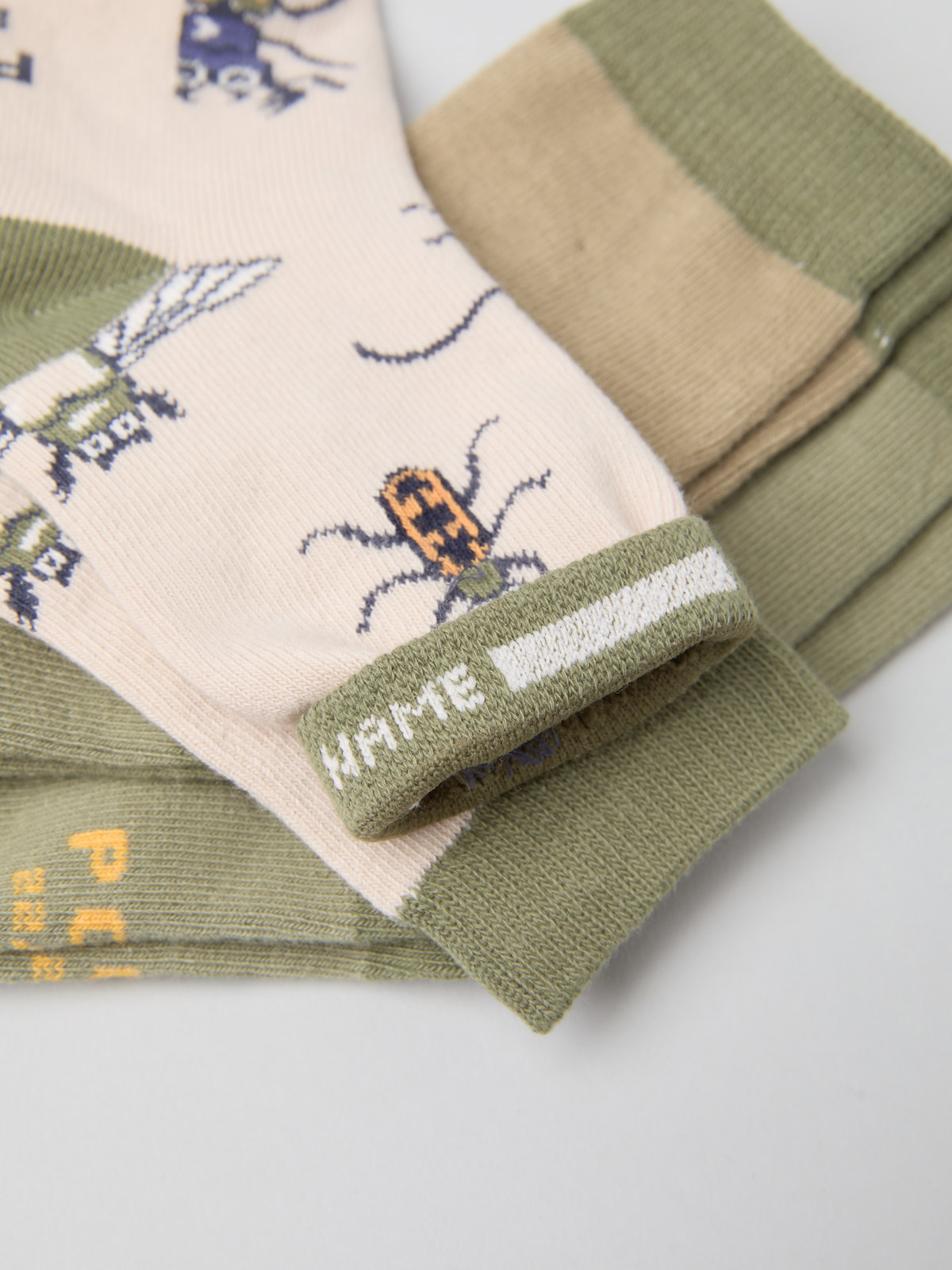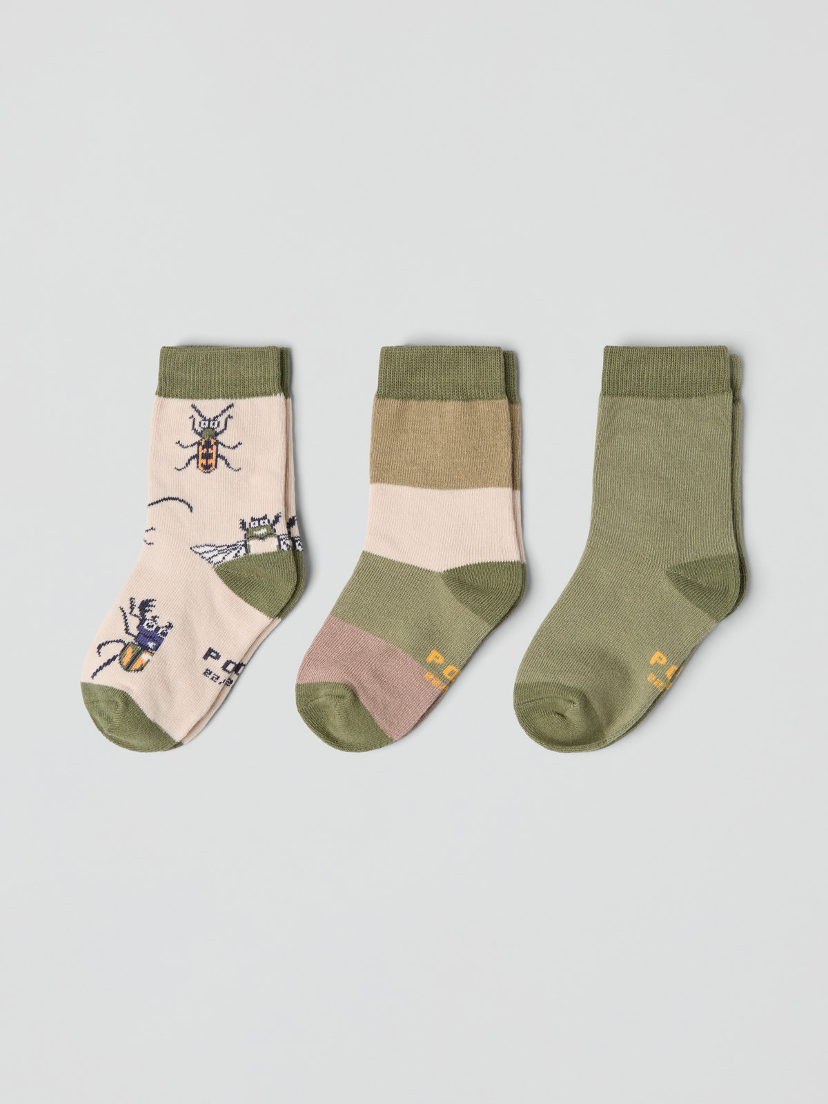 Strumpor i mjuk ekologisk bomull i 3-pack. Varje par har en unik design och matchar snyggt med övriga kollektioner. På insidan av skaftet finns plats att skriva barnets namn – lätt att hålla ordning!