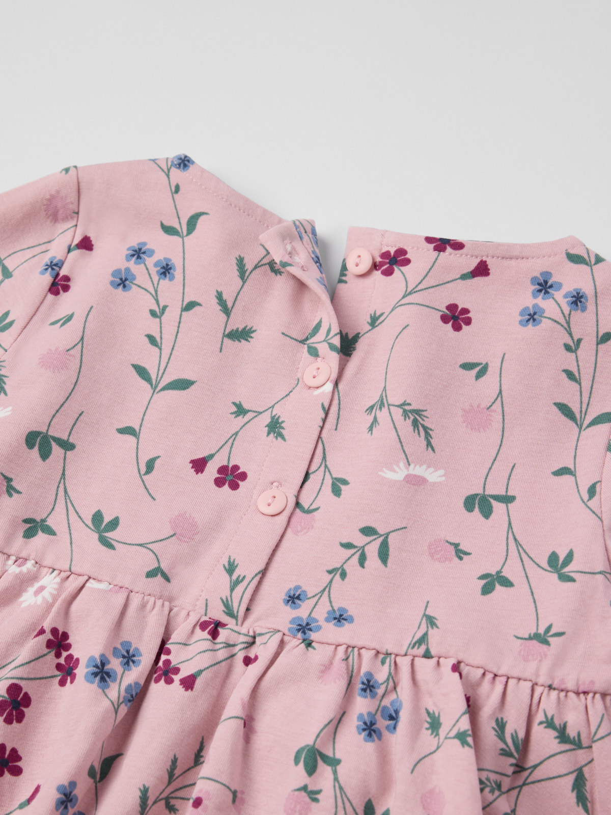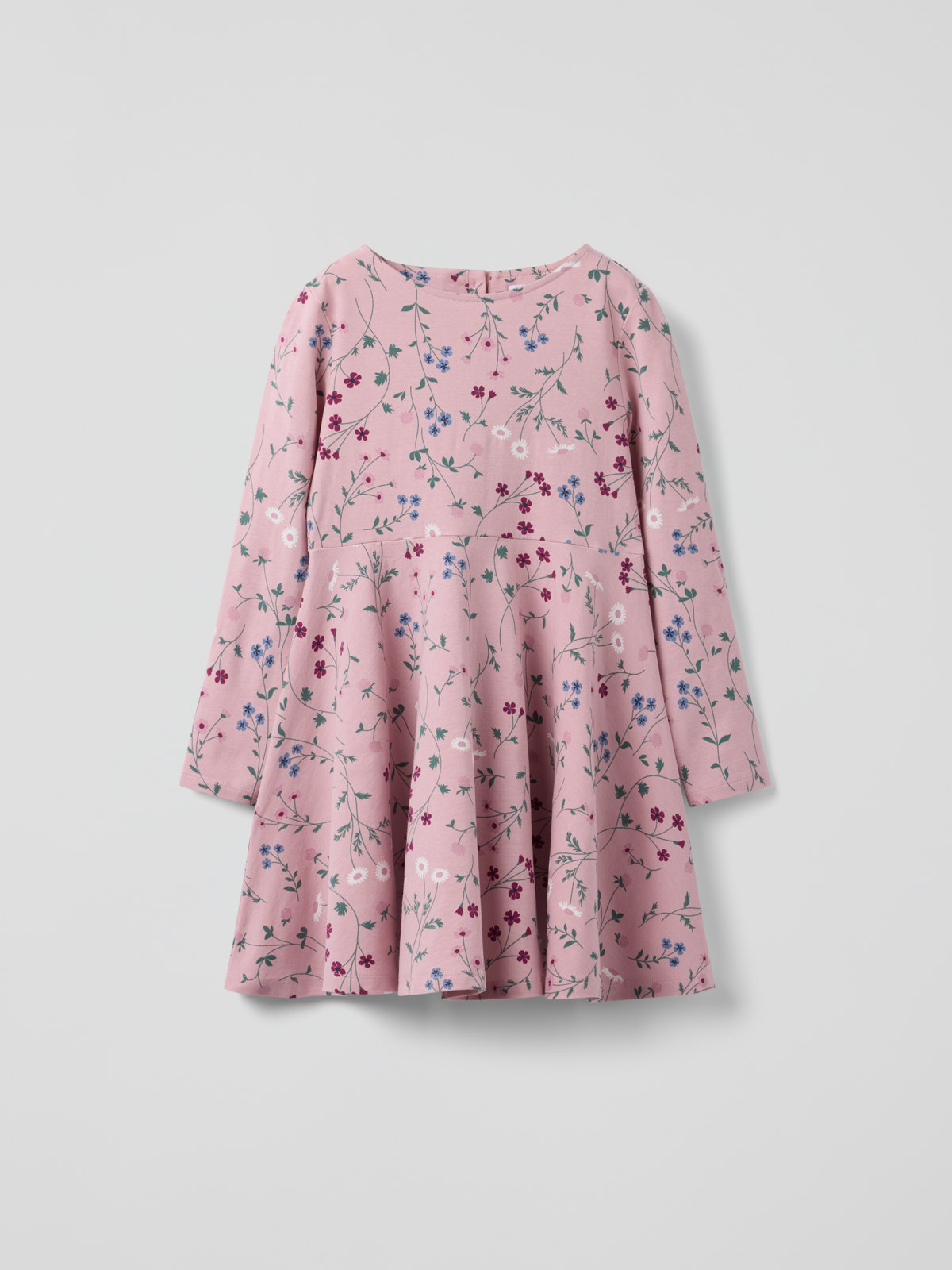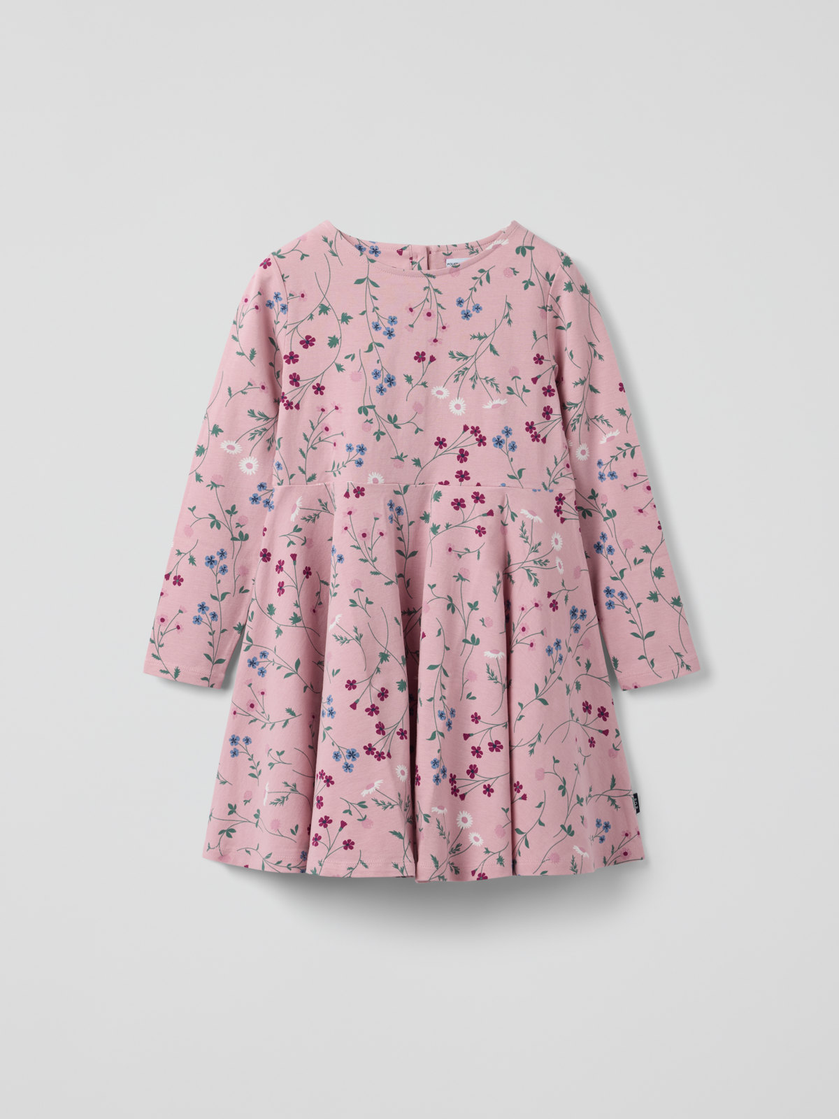 I storlek 86-92 är klänningen högre skuren i midjan och har en rynkad kjoldel.