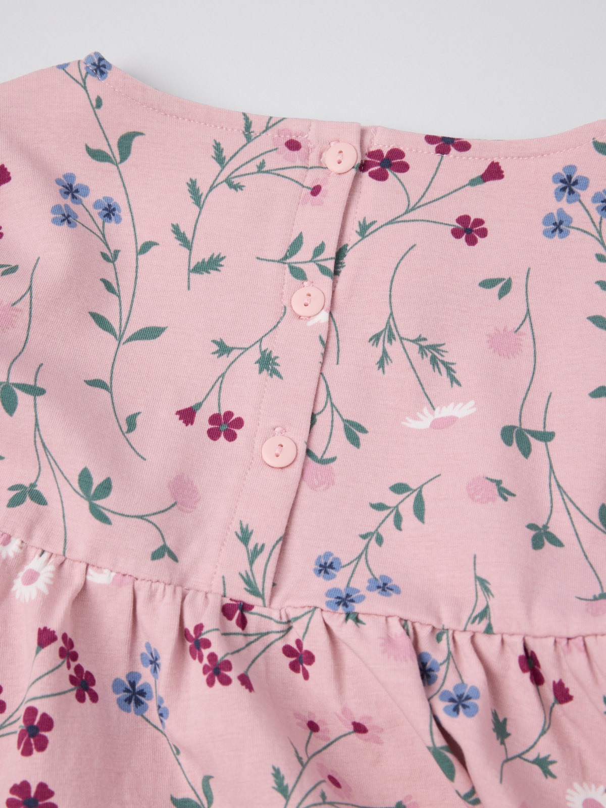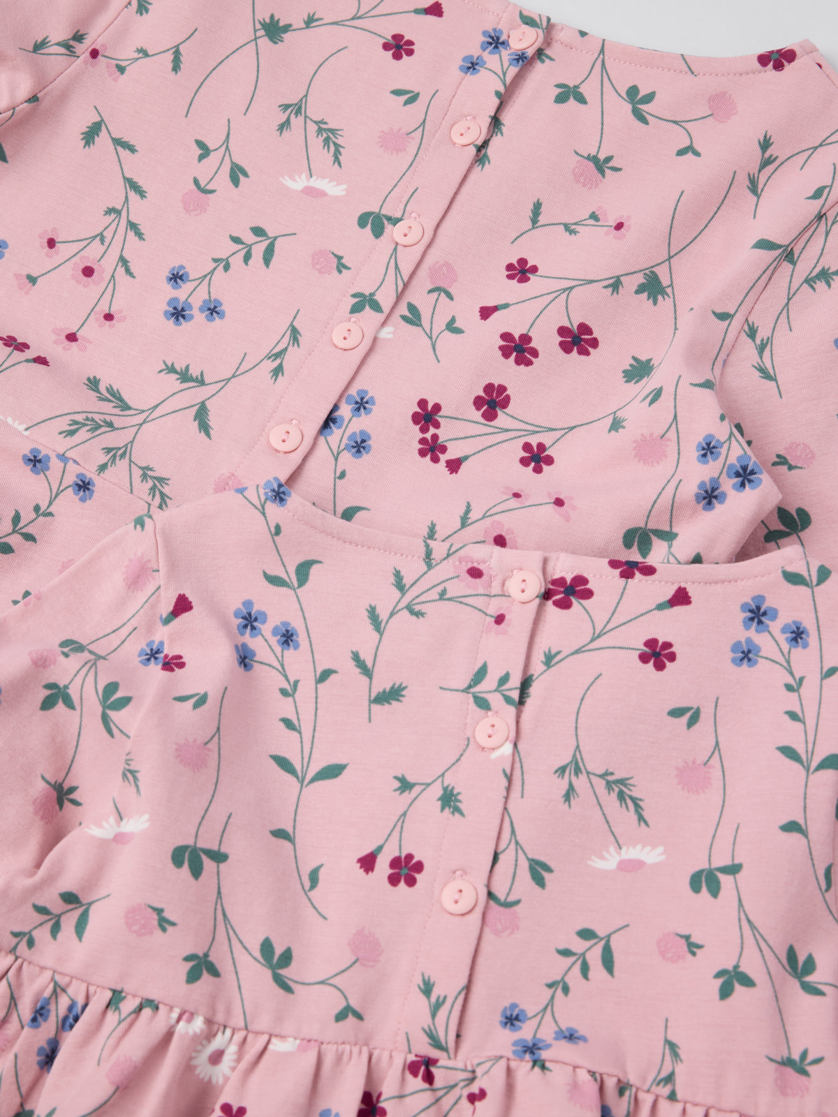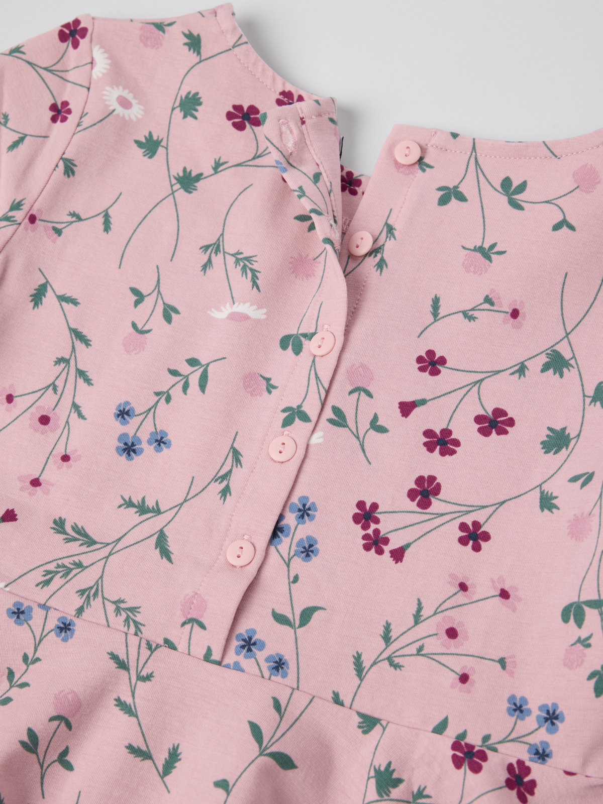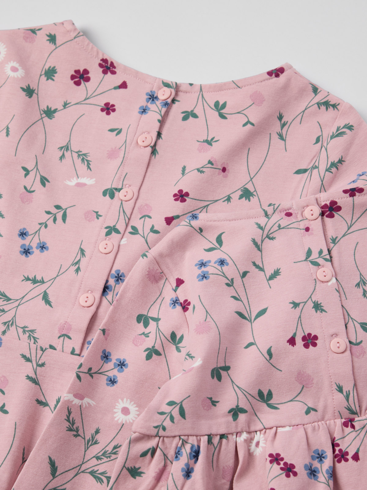 I storlek 86-92 är klänningen högre skuren i midjan och har en rynkad kjoldel.