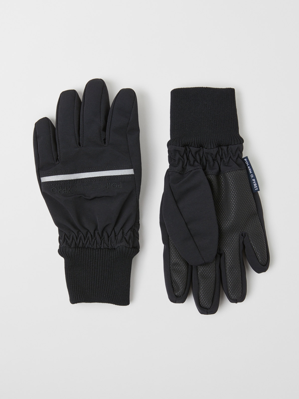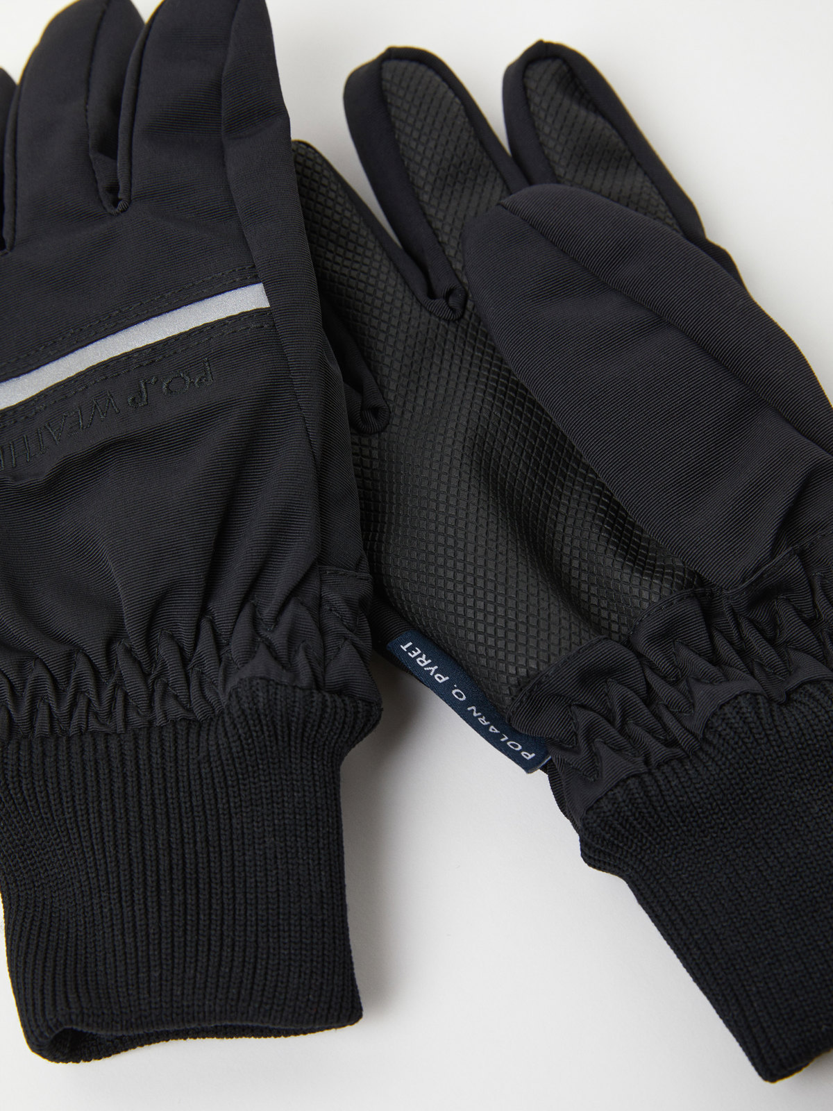 Vind- och vattentäta skalhandskar i slitstarkt material med förböjd passform för bra rörlighet. Handskarna har mjuka, ribbade muddar kring handleden och tydliga reflexer. De har även greppvänlig yta på insidan av handflatan och fingrarna.