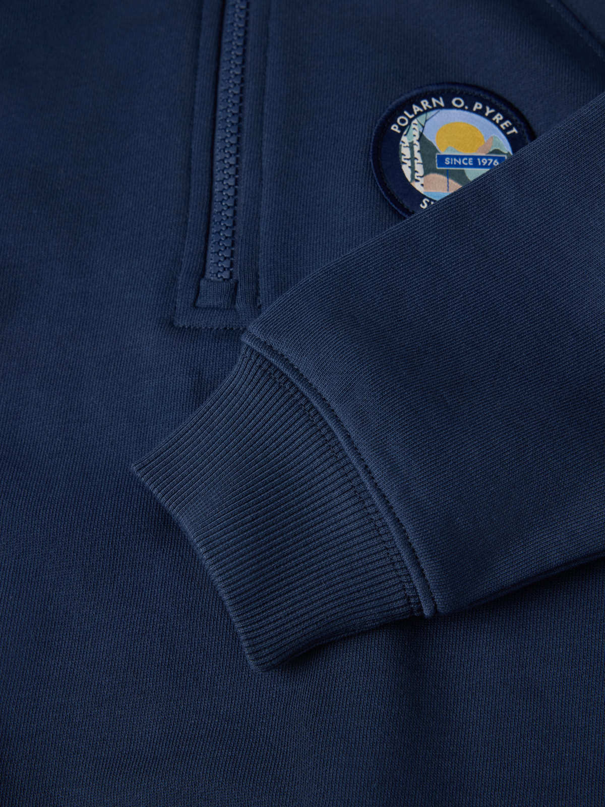 Mjuk tröja i 100 % ekologisk bomull med skön sweatshirtkvalitet – riktigt skön vardagsfavorit! Tröjan har ribbad mudd i nederkant och ärmslut för skön passform och kort dragkedja i halsen.
