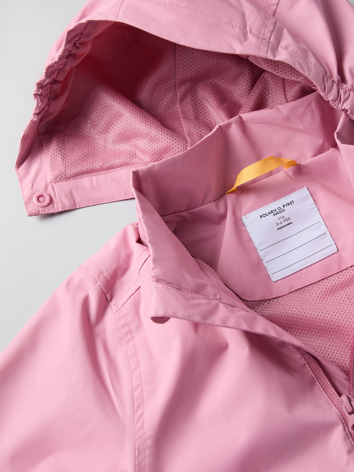 Vind- och vattentät jacka i tunt, smidigt material av återvunnen polyester – perfekt att ha i ryggsäcken för att snabbt kunna dra på om regnet kommer! Materialets goda andningsförmåga släpper ut överskottsvärme och fukt.