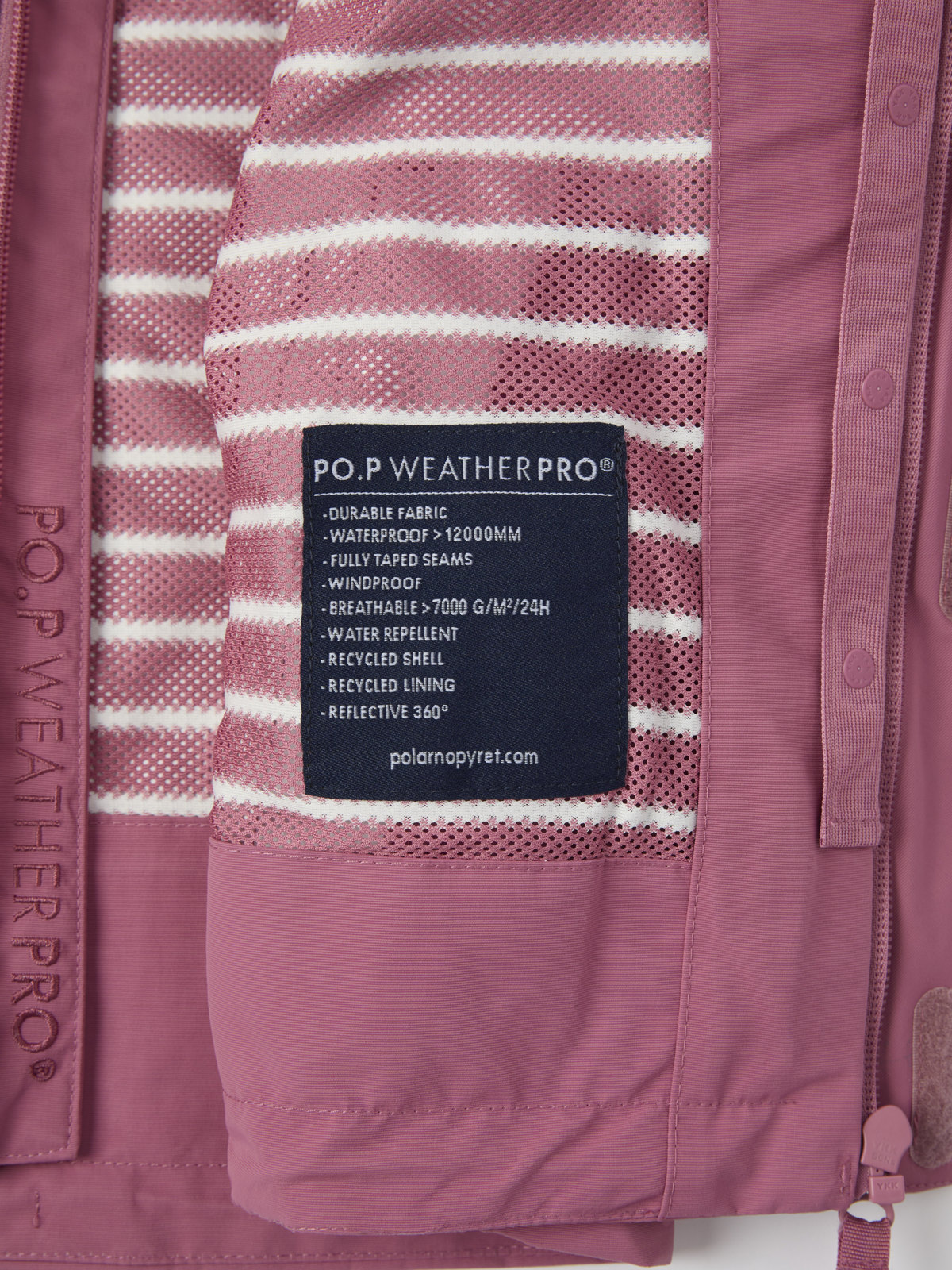Ytterkläder märkta PO.P WeatherPro® uppfyller alla våra krav för funktionsytterplagg, oavsett om det gäller slitstyrka, vattentäthet, andningsförmåga eller barnsäkerhet.