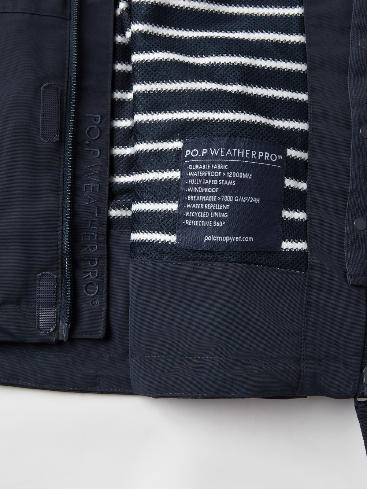 Ytterkläder märkta PO.P WeatherPro® uppfyller alla våra krav för funktionsytterplagg, oavsett om det gäller slitstyrka, vattentäthet, andningsförmåga eller barnsäkerhet.