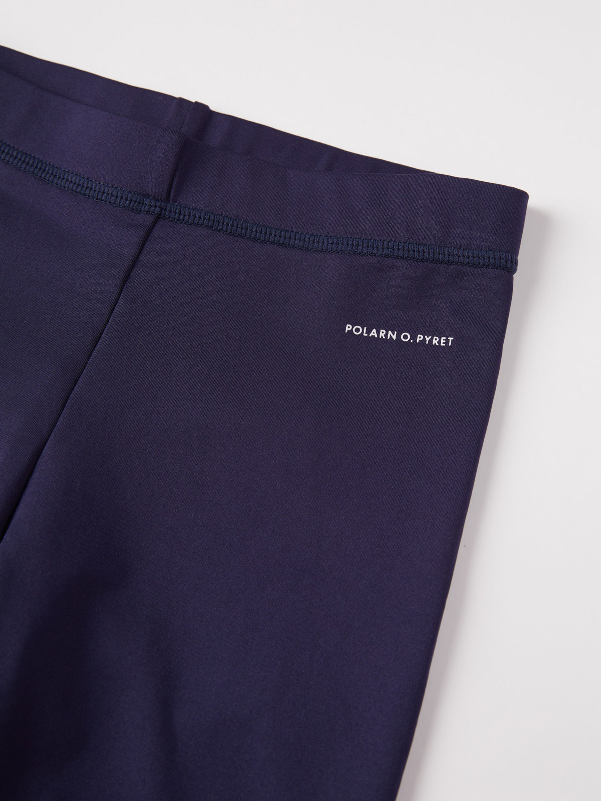 Enfärgad hellång badbyxa i ett återvunnet tyg med UV-skydd.
