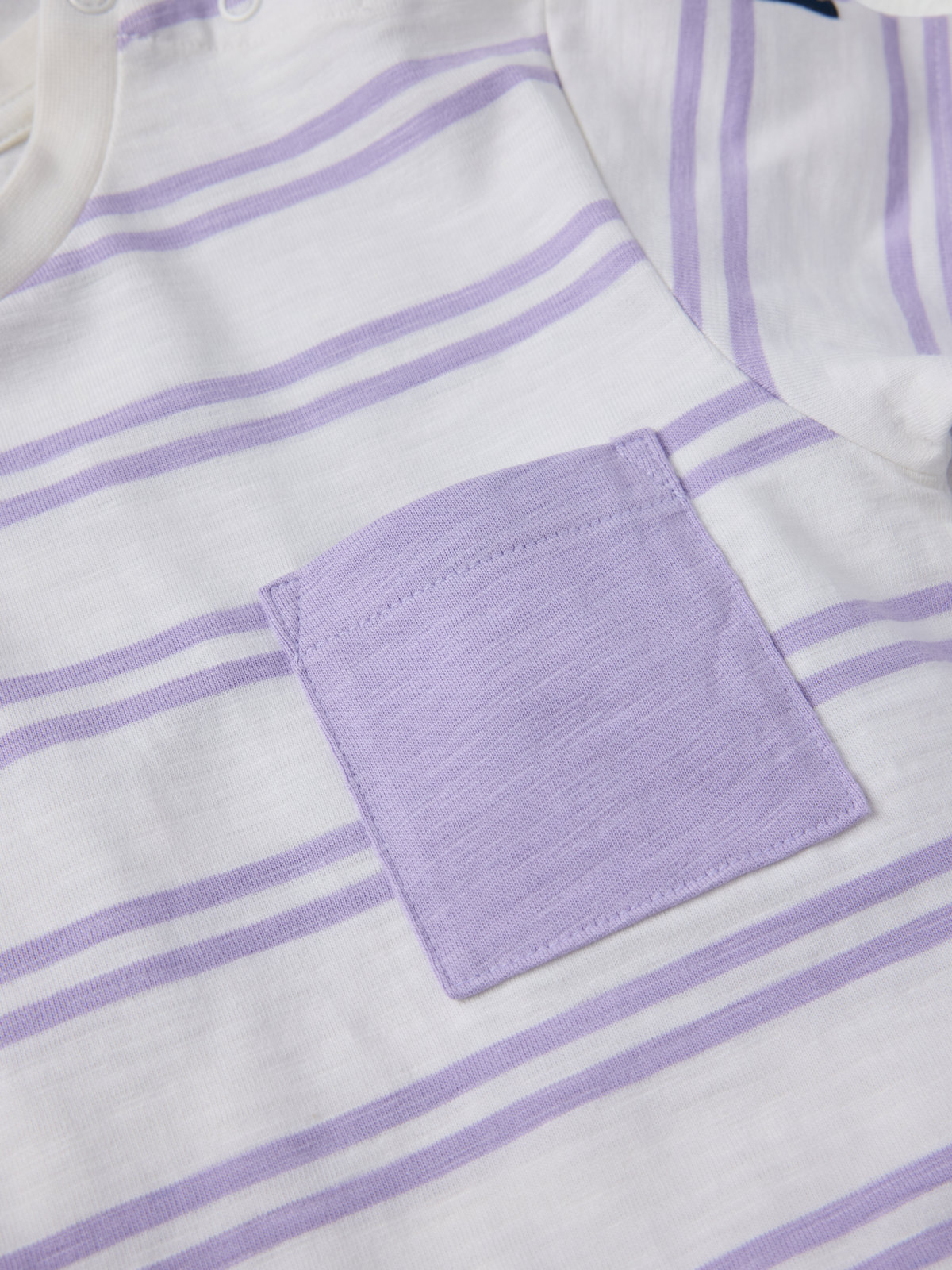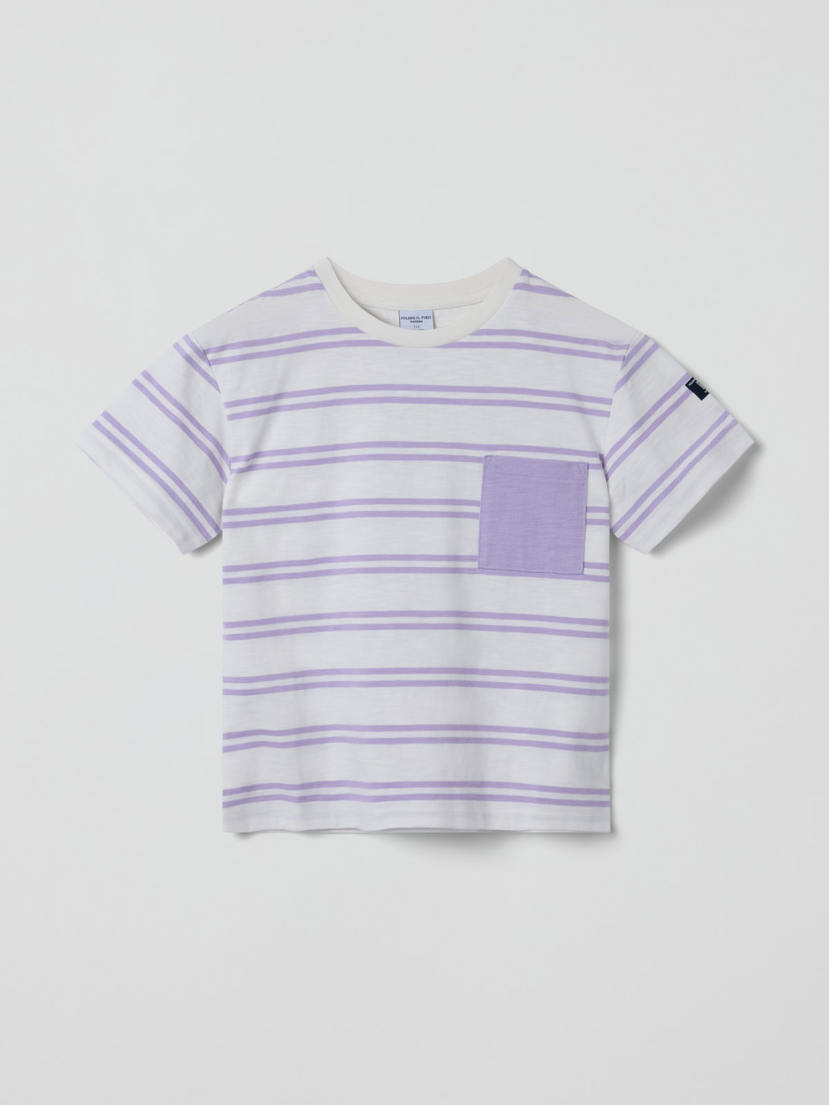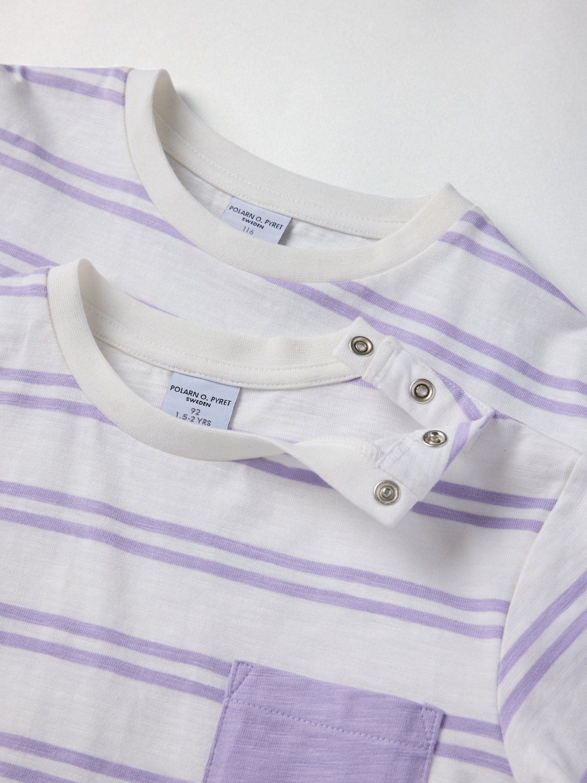 Randig t-shirt i 100 % ekologisk bomull – en riktigt skön sommarfavorit! T-shirten har vid passform och matchar fint med hela kollektionen.