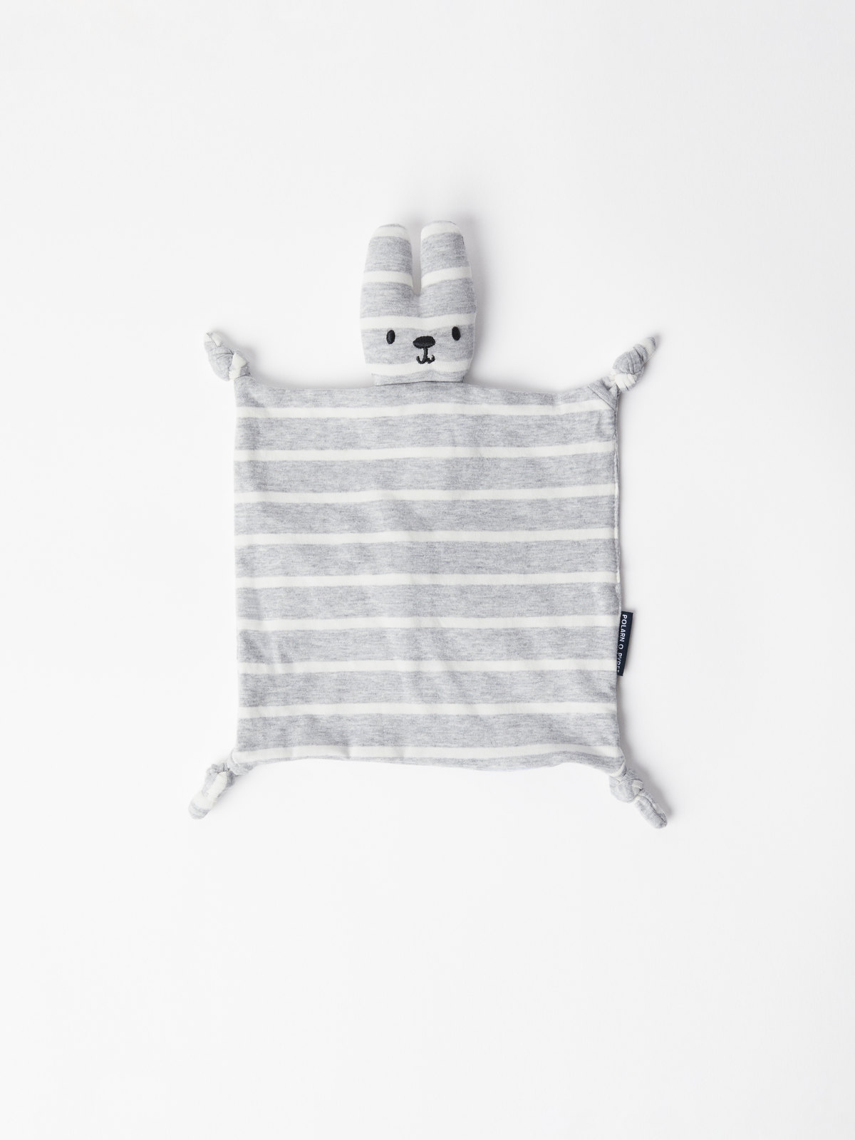 Den här mjuka och gosiga snuttefilten med söt kanin, kommer bli din babys bästis. Filten har vår klassiska rand och är gjord i 100% ekologisk bomull. Kaninen är stoppad med 100% återvunnen polyester.