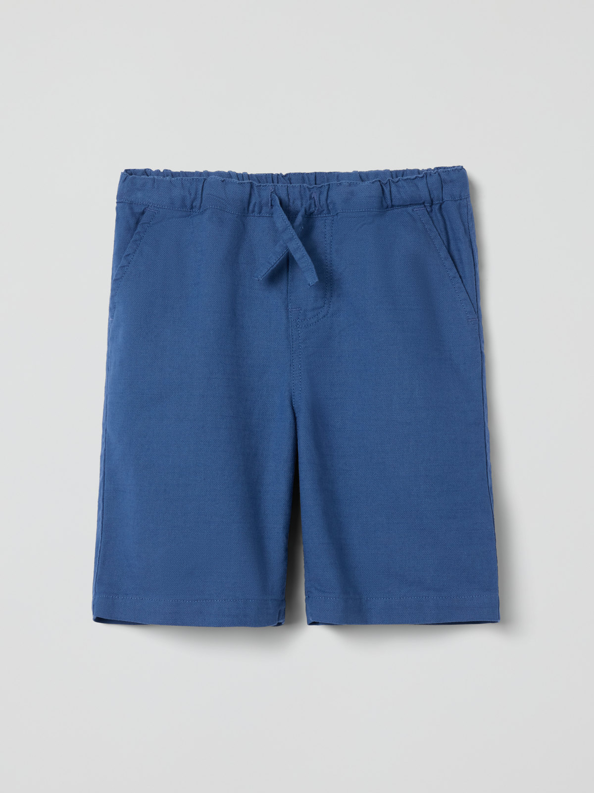 Enfärgade shorts i tunn ekologisk bomull med linnekänsla – sköna både till vardag och fest. Shortsen har elastisk midja som går att justera med knytband, samt två fickor fram.