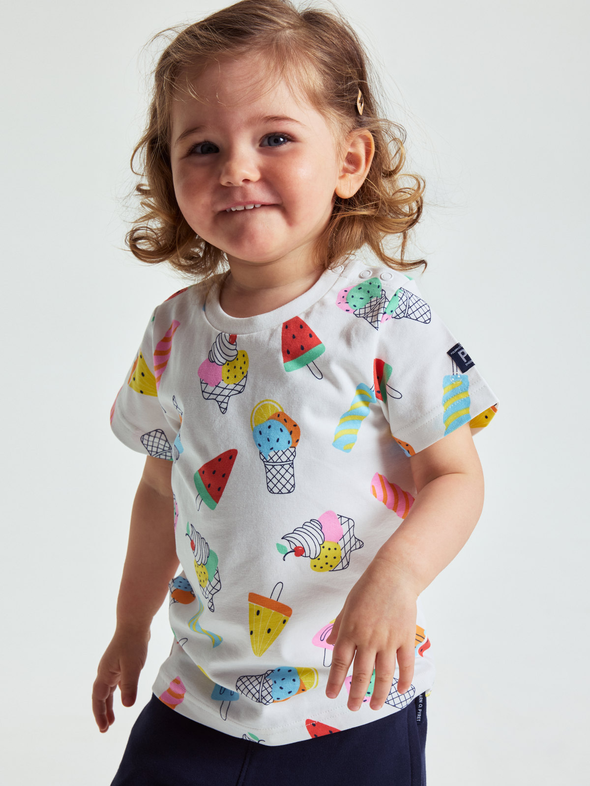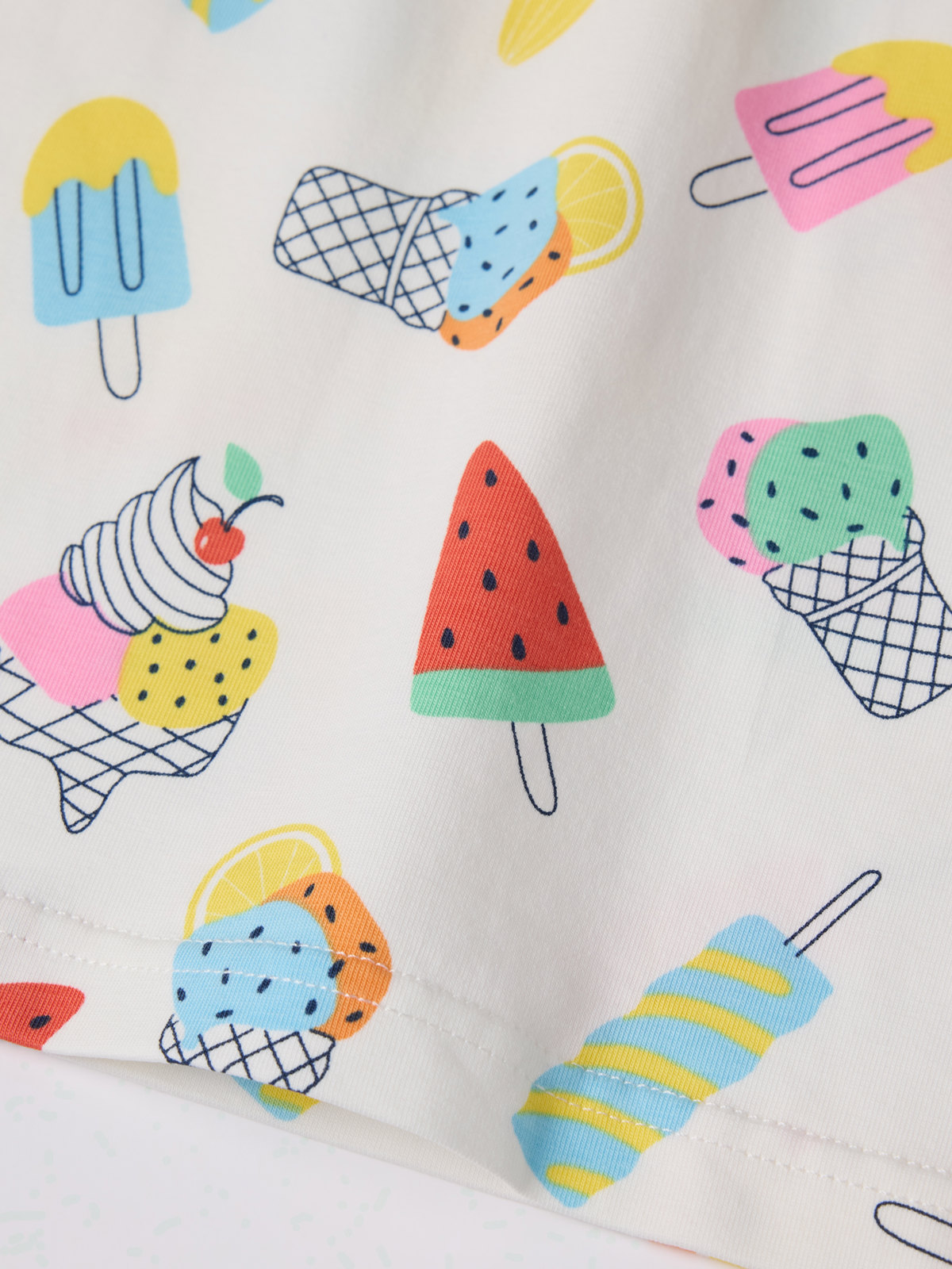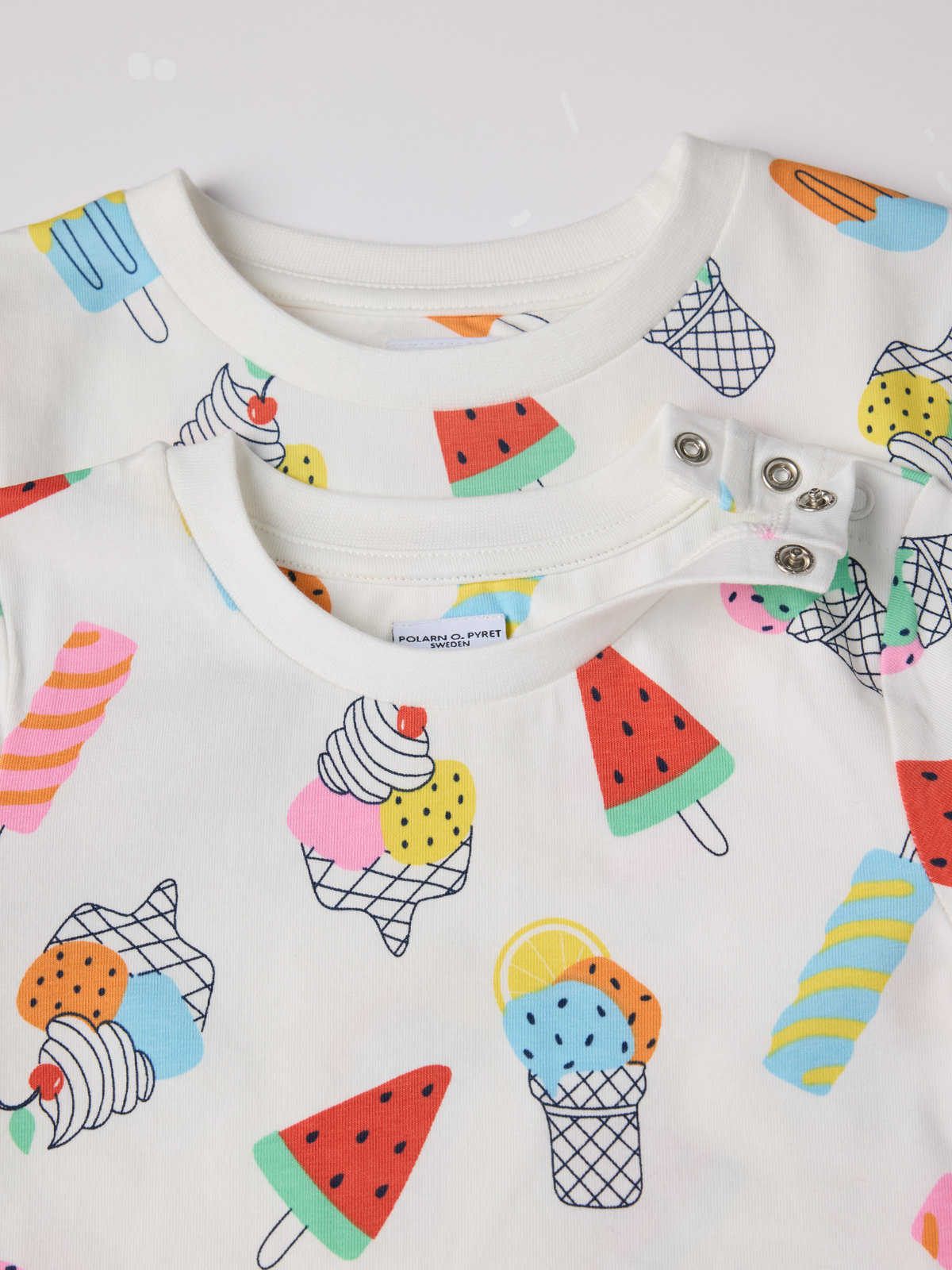 T-shirt i mjuk ekologisk bomull helmönstrad med glassar – en riktigt sommarfavorit att älska länge och som passar till allt! T-shirten finns i flera färger och med olika prints som matchar fint med hela kollektionen. Hitta din favorit!