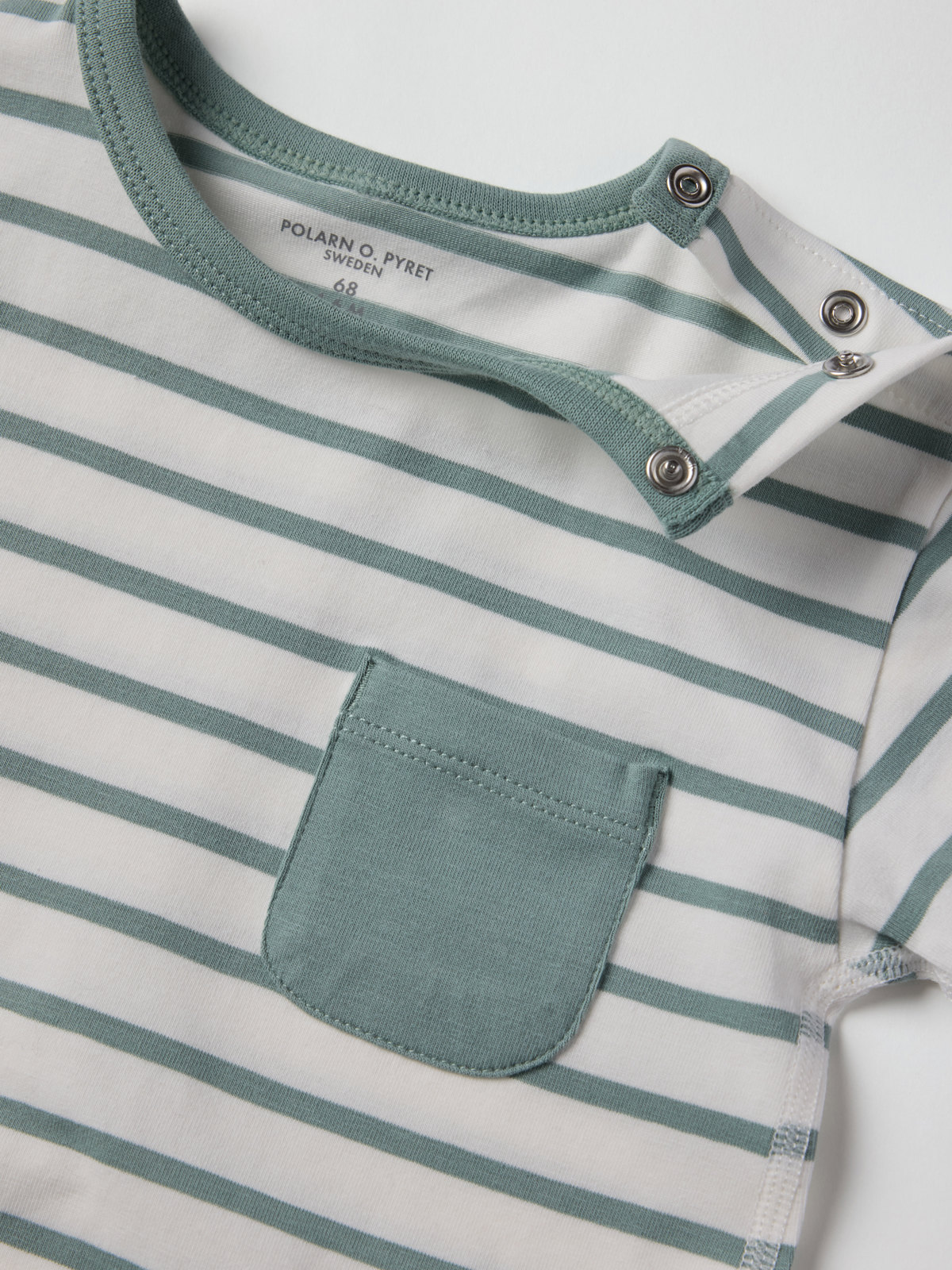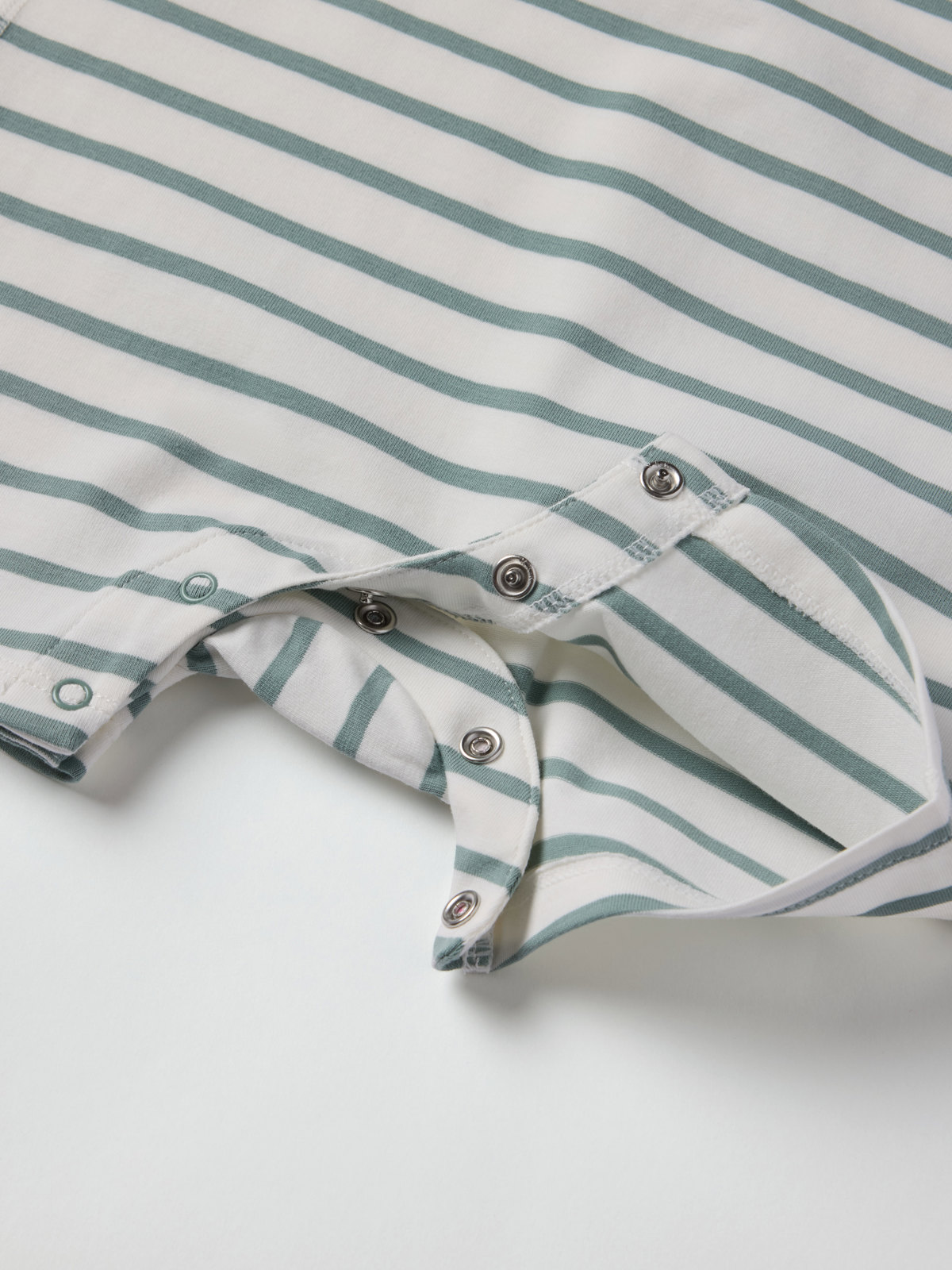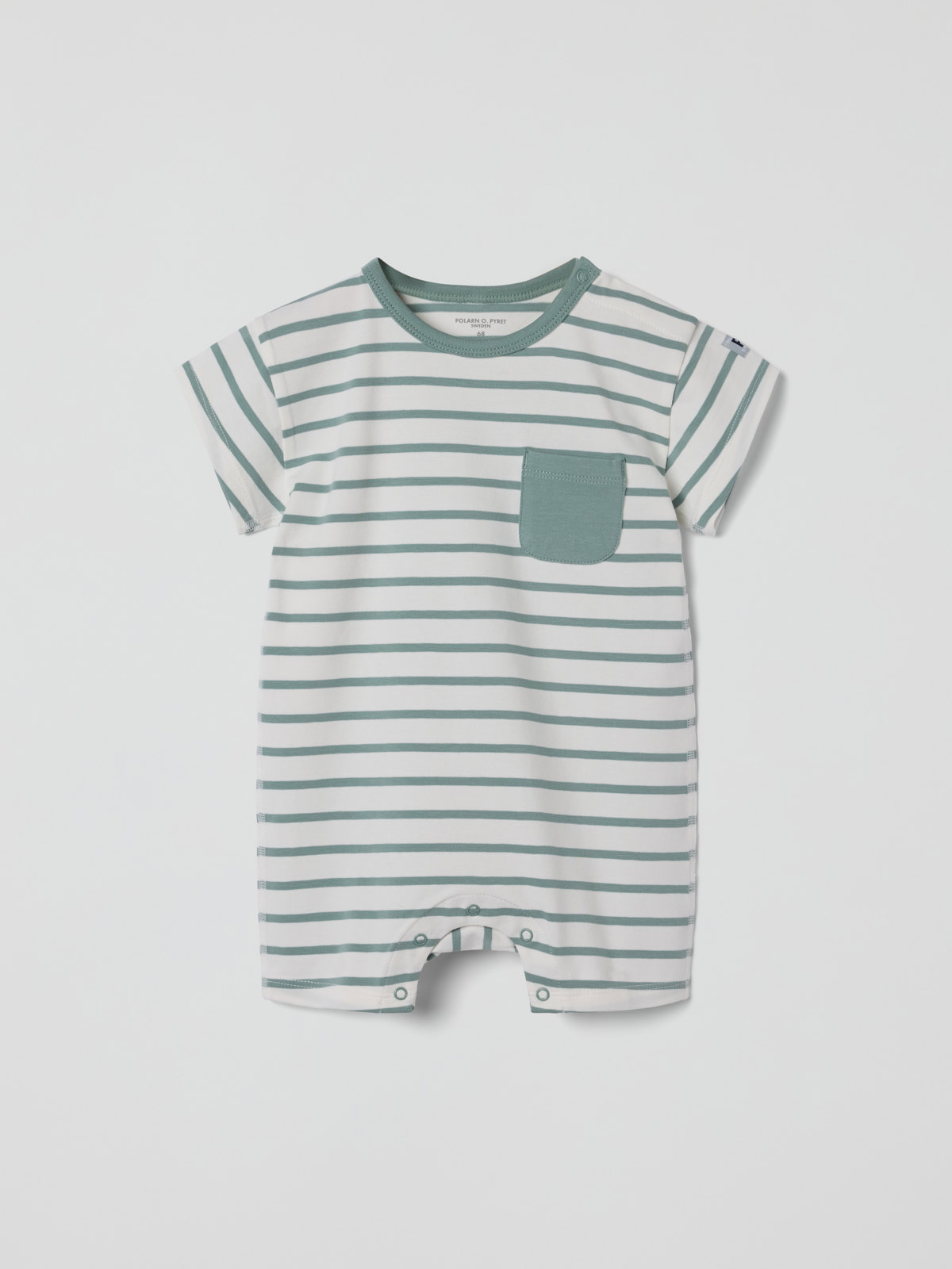 Randig playsuit i mjuk ekologisk bomull för baby – en riktig sommarfavorit! Playsuiten är sydd med extra mjuka sömmar och är skonsam mot känslig hud. Tryckknappar på ena axeln och i grenen underlättar kläd- och blöjbyten.