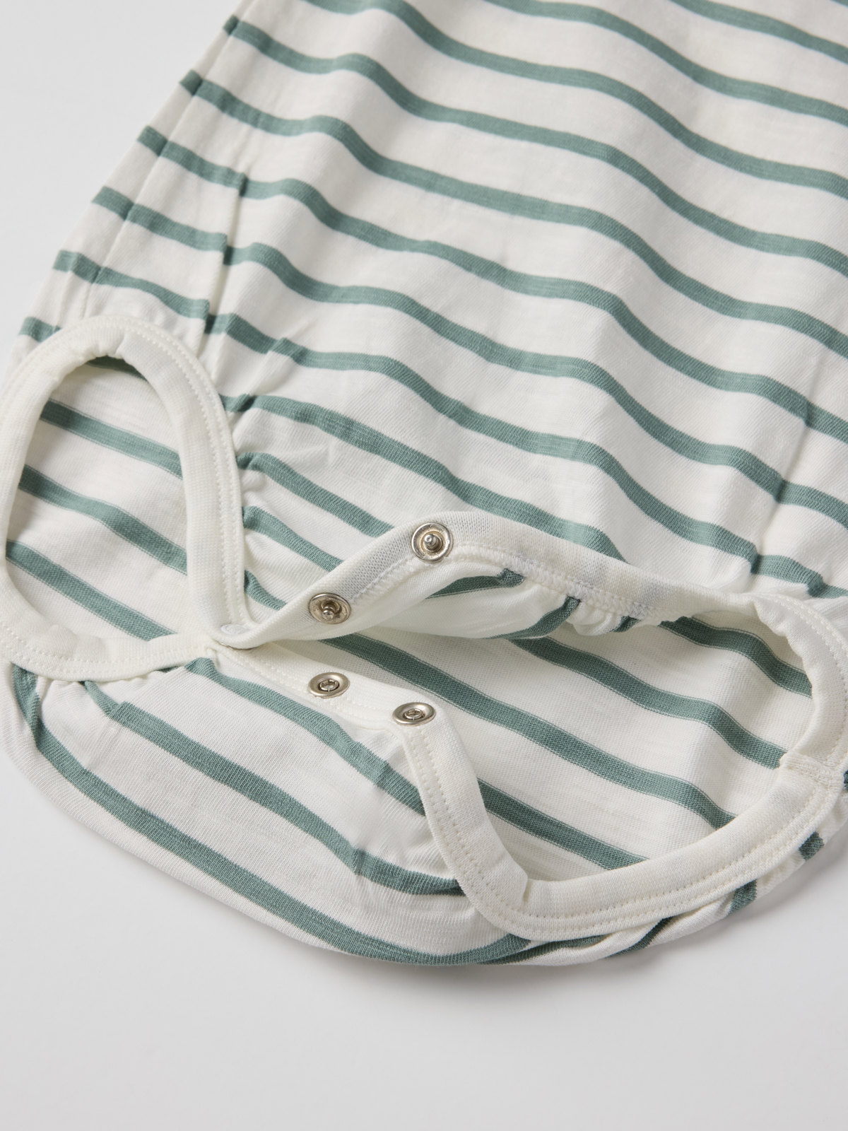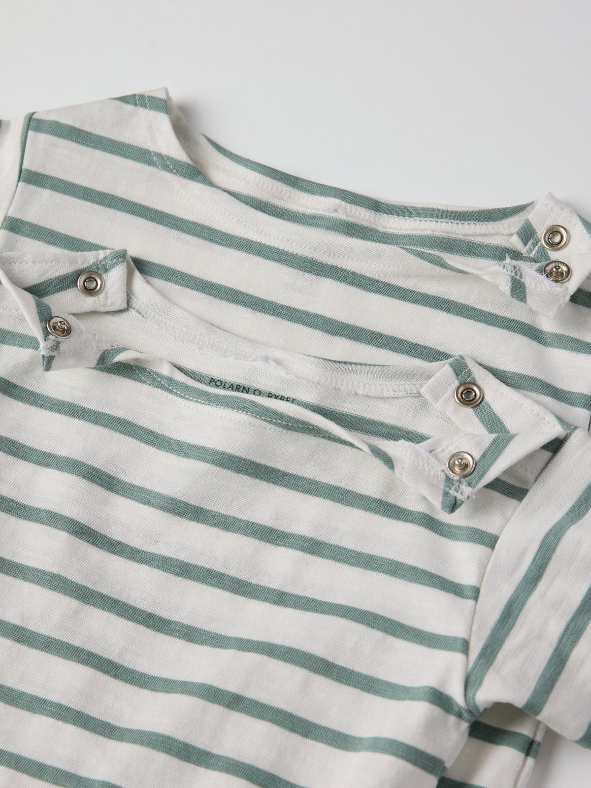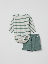 Set med långärmad body och shorts i 100 % tunn ekologisk bomull för baby – perfekt för varma dagar, då det skyddar lätt mot solen och är svalt och skönt. Bodyn har tryckknappar på båda axlarna samt i grenen för att underlätta klädbyten. Shortsen har elastisk midja för skön passform.