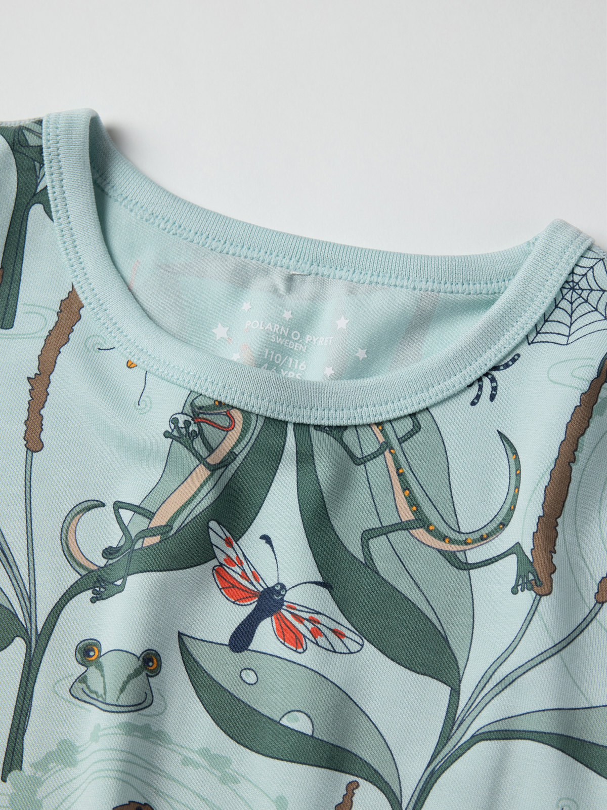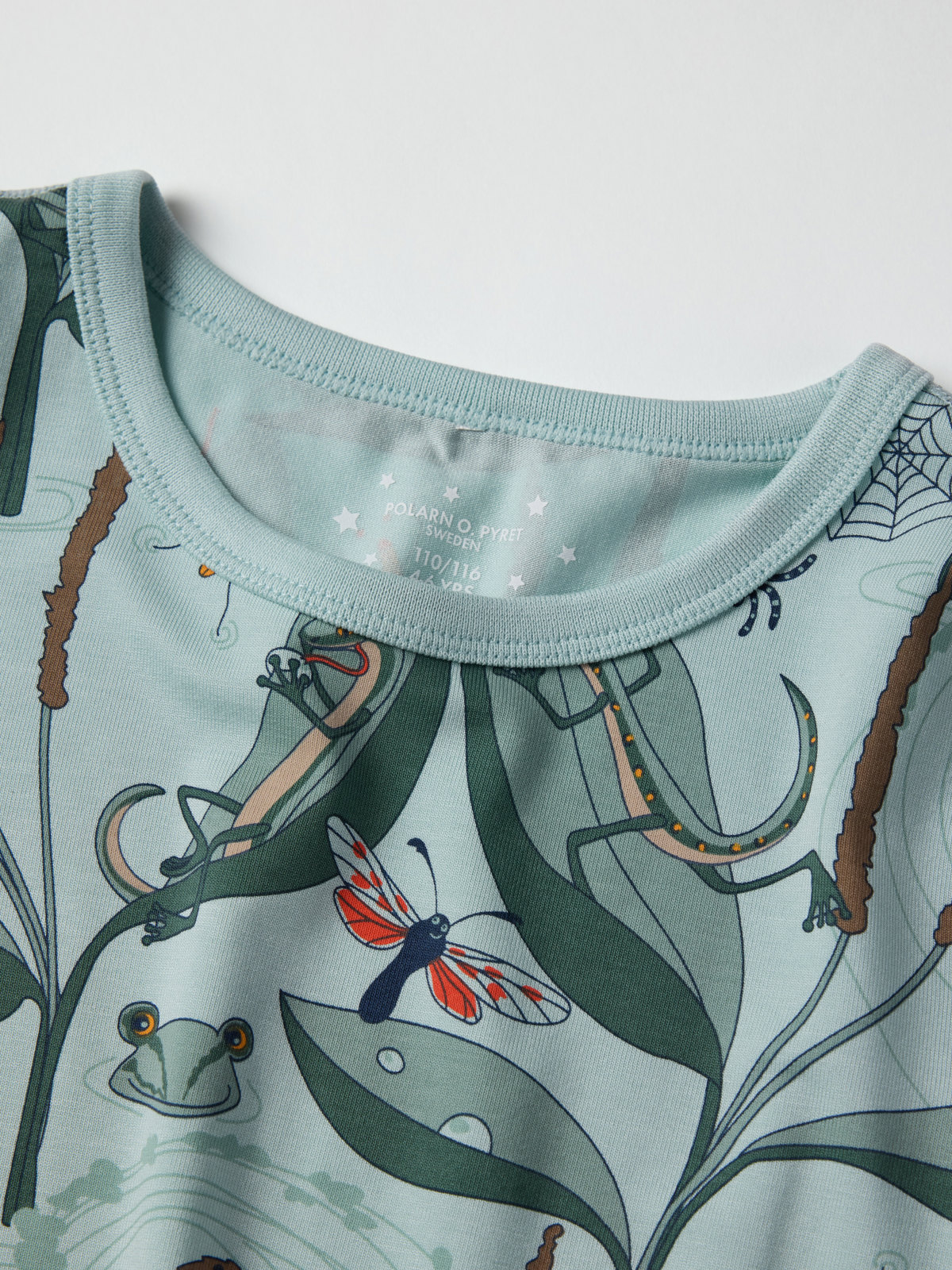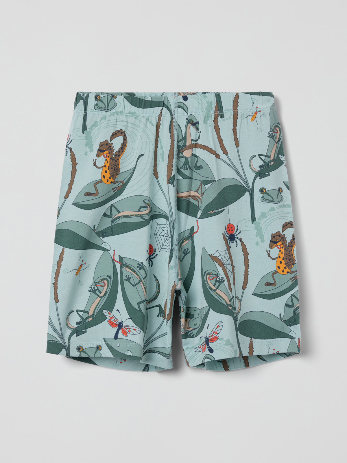 Kort, tvådelad pyjamas tillverkad i tunn och sval trikå av Tencel™ lyocell – perfekt för varma nätter! Pyjamasen är sydd med extra mjuka sömmar och är skonsam mot känslig hud. Den är helmönstrad med ödlor. Shortsen har elastisk midja för skön passform.