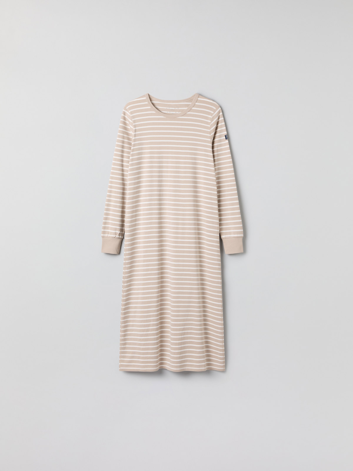 Ett supermjukt nattlinne i 100% ekologisk bomull, i vuxenstorlekar. Nattlinnet har vår klassiska rand och har mjuka enfärgade muddar vid ärmsluten.