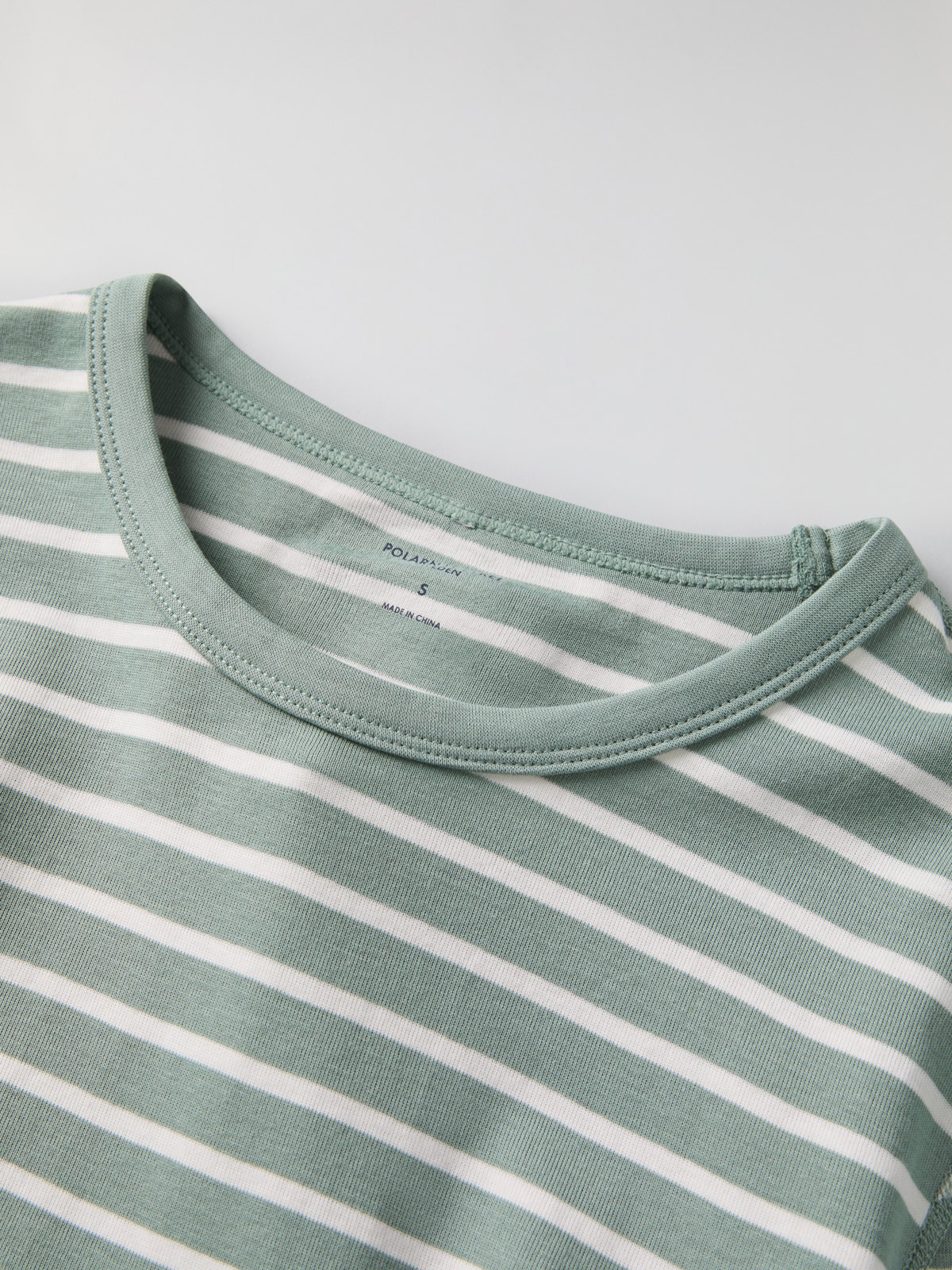 Set med tröja och byxa i vår klassiska rand för vuxen. Tröjan har mjuk ribbad mudd kring halsringning och vid ärmslut. Byxan har elastisk midja och mjuk ribbad mudd vid benslut.