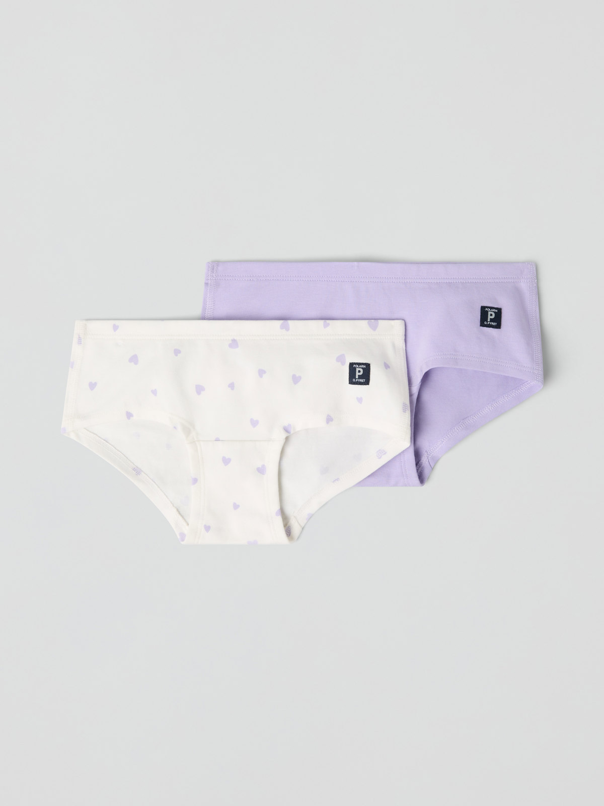Hipstertrosor i mjuk ekologisk bomull sydda med extra mjuka sömmar som inte skaver. Trosorna är helmönstrade med hjärtan.