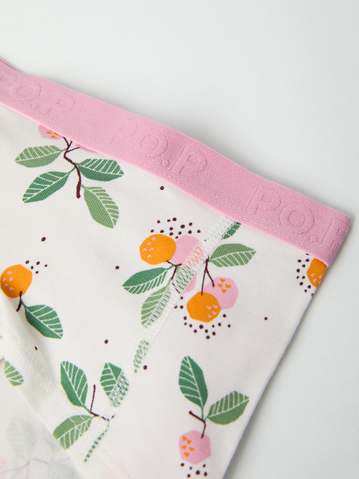 Boxertrosor i mjuk ekologisk bomull, helmönstrad med bär. Trosorna är sydda med extra mjuka sömmar som inte skaver.